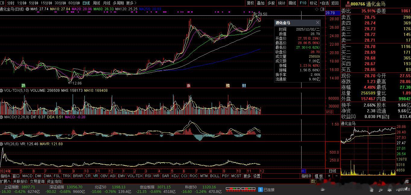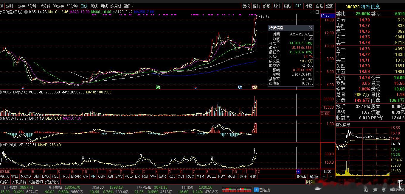 【财富晚茶】十大利好(12.03):追寻沪深北市十大利好信息的股票导语:作者系《网易号》优质财经领域创作者。曾经原创作者和知名网易号旅游领域创作者。大跨度行业等的写作,颇受网友喜爱。作品发表于 2025.12.03.09:18 优雅端庄晚风。编者的话:追寻市场:蛛丝马迹动态趋势。今天主题:【财富晚茶】十大利好(12.03):追寻沪深北市十大利好信息的股票。最新市场:新鲜出炉:2025.12.03.09:18十大利好股票参考。偏重其中:机构分析、龙虎榜数据、高成长性潜力等。综合筛选:涵盖化学制剂、光纤光缆、百货、石化等领域。兼顾短期:热点长期估值。每个股票:附简要利好原因。一、主力资金:市场表现前三佳股票通化金马(000766) 合百集团(000417) 特发信息(000070)二、主力资金:十大利好信息的股票1、果麦文化(301052)核心逻辑:AI概念。早晨点评:基于AI的场景图绘制软件,应用场景广泛。2、易点天下(301171)核心逻辑:AI概念。早晨点评:掌握大数据、机器学习等前沿技术,成长性突出。3、海南高速 (000886)核心逻辑:承担环岛高速扩建等千亿级基建。早晨点评:土地储备超千亩,物流需求驱动土地增值。4、中钨高新(000657)核心逻辑:军工新材料。早晨点评:钨矿自给率提升,行业供需趋紧支撑钨价。5、丝路视觉(300556)核心逻辑:元宇宙概念。早晨点评:以VR定制化内容为切入口,布局元宇宙场景。6、特发信息(000070)核心逻辑:AI算力与F5G双热点驱动。早晨点评:前三季度净利润同比增80.75%,算力基建业务突破显著,资金持续涌入。7、合百集团(000417)核心逻辑:区域零售龙头。早晨点评:拥248家实体门店,覆盖全省的连锁网络体系。推进“三新”合家福模式。2024年自有品牌销售同比增长143.63%。收购金太阳科技5%股权。发展跨境电商,推进冷链物流扩容,肥西物流园二期拟整合生鲜加工配送功能。8、胜宏科技(300476)核心逻辑:PCB核心供应商。早晨点评:AI服务器需求带动,市场关注度提升。9、通化金马(000766)核心逻辑:阿兹海默概念。早晨点评:自主研发项目取得重大进展,市场关注度高。10、统一股份(600506)核心逻辑:新能源车概念。早晨点评:推进低碳产品战略升级,成长潜力大。风险提示1、部分科技板块亦或估值偏高需留意外部环境。2、美联储政策中美贸易摩擦内部经济不确定性。三、主力资金:其他利好信息的股票1、智能污水处理系统中持股份(603903)核心逻辑:环境技术领军企业。晚间点评:推出嵌入式污水处理厂智能控制站PLANTwin产品,提升技术竞争力。与AI技术公司合作开发智能污水处理系统。与三峡集团及地方环保部门协同治理。引入产业资本优化股权结构。已落地的肃宁县、任丘市PPP项目。参股公司华氢能(持股25%)。2、蛋种鸡商品代鸡苗晓鸣股份(300967)核心逻辑:蛋种鸡行业龙头。晚间点评:商品代鸡苗供给持续偏紧。通过“青年鸡+预混料”业务拓展产业链,形成生态共建新增长点。应用封闭式鸡舍与空气能热泵技术,降低能耗30%以上。优化蛋种鸡基因序列,提升雏鸡存活率至95%。利用戈壁滩地理优势实现废弃物资源化利用。四、 创作不易:优质网易财经作者投资投机迷茫之中:给予尽可能有帮助:资本市场风险自负。(优雅端庄晚风《网易号》财经领域创作者和原创作者 违者必究)