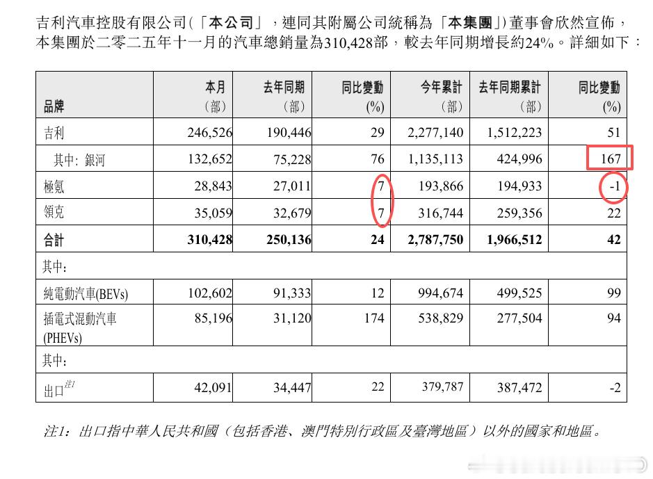 之所以说周报加剧内卷情绪,看看月报都明白了,极氪去年到今年面对这么大的波折和起伏,极氪的年累计甚至仅仅-1%,极氪领克今年多车上新,月同比不过+7%,它要是暴涨我还觉得不对劲呢领克年累计+22%,看得出新老产品更替有用都说了汽车是长期主义,一周一月的起伏都是小事,要看大盘但是银河是真的🐂🍺,年累计+167%,吉利油车还有+51%,什么叫做基本盘啊(战术后仰汽场全开大v聊车