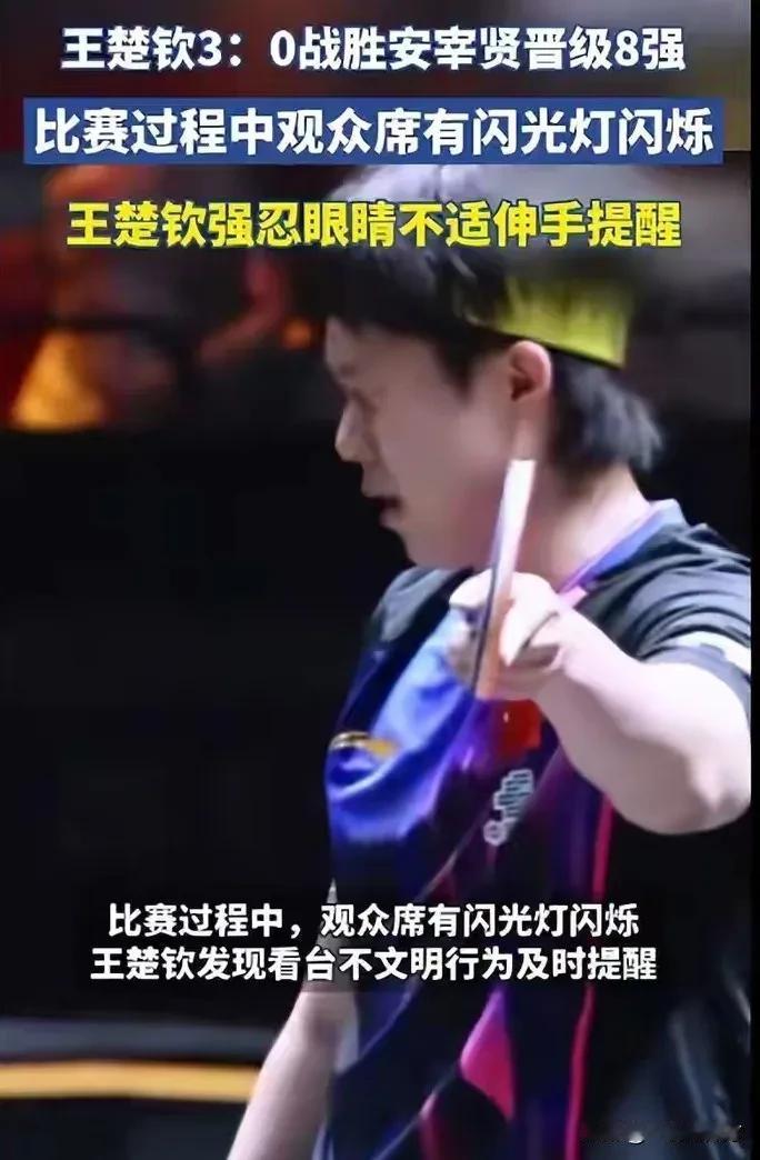不知道从什么时候开始,乒乓球运动员在场上比赛时又额外增加了一项“工作”,就是去提示用闪光灯拍照的观众,实在让人搞不懂,在这样的场地里坐在观众席远距离拍照,闪光灯没有任何意义,难道是不会关闭闪光灯吗?还是要制造自己的“存在感”,或者有意为之?