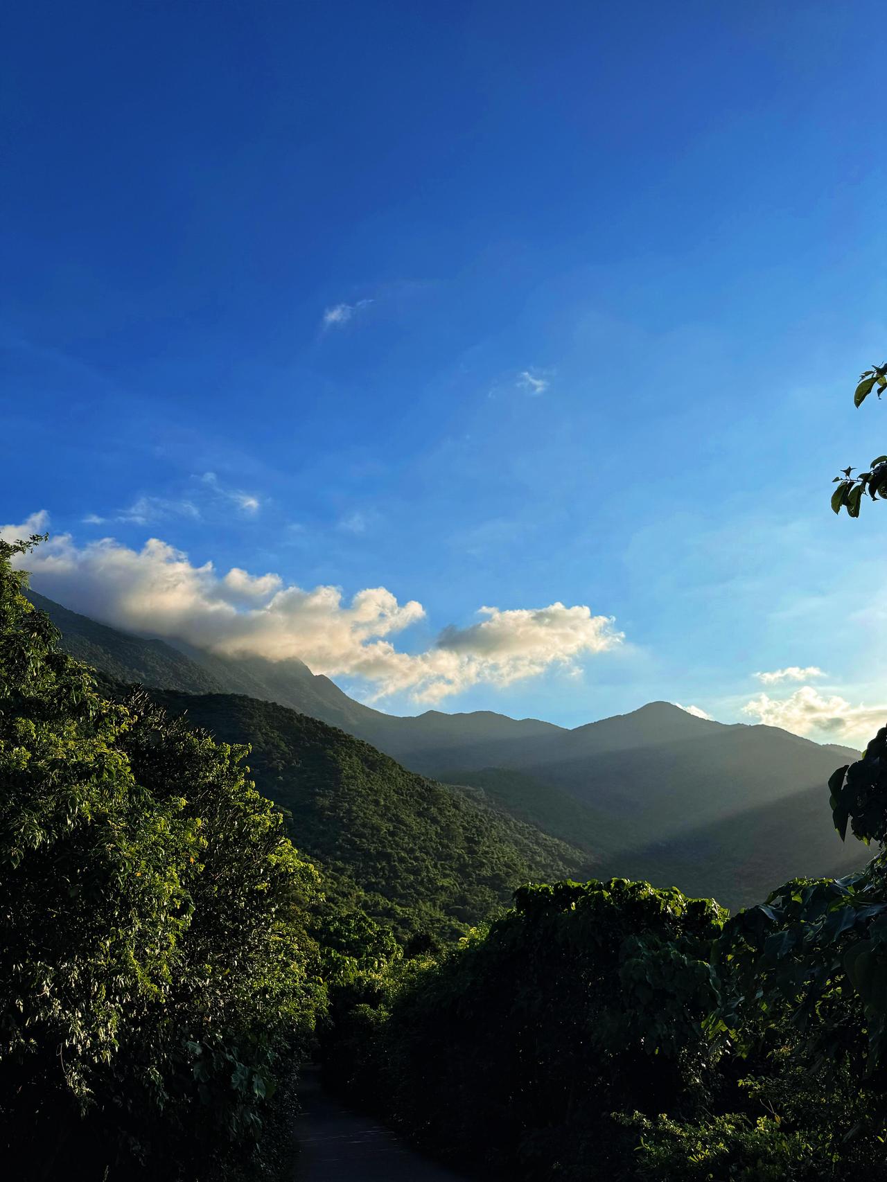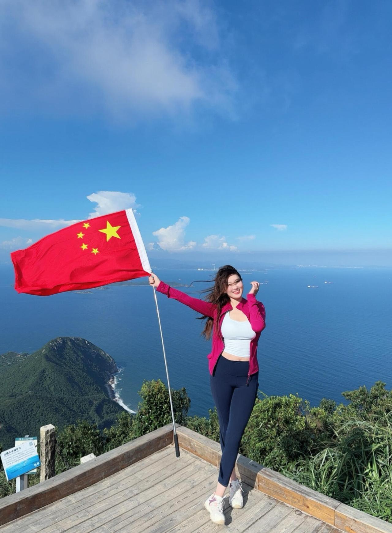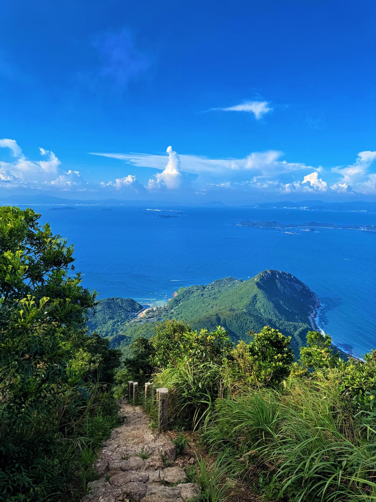 《念奴娇·晴峦海畔》 晴光铺野,正风梳翠麓,浪摇青甸。 一抹嫣红簪雾顶,笑惹云衣轻卷。 露浥苔阶,香沾鬓角,屐齿留新浅。 行囊斜倚,衬来眸底星软。 遥看列岛浮波,晴云叠絮,天与沧溟远。 忽展红旗开晓色,风里霞痕飞溅。 林隙流光,襟边碎影,都作清欢剪。 山亭凭处,此身长在春畔。