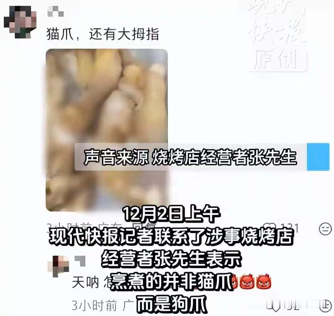 湖南一烧烤店被指直播煮猫爪,商家回应直播煮猫爪实为狗爪——舆论风暴背后的深层思考近日,湖南某烧烤店因一场直播被推上风口浪尖——网友指责其直播过程中煮制“猫爪”,引发公众强烈不满和谴责。面对铺天盖地的质疑,店家迅速回应称,所谓“猫爪”只是“狗爪”。这场“猫爪风波”瞬间在网络上炸开了锅,不仅挑战着公众的底线,也让人陷入对餐饮行业食材安全及道德底线的深刻反思。 我们先来理性看待这一事件:无论是猫爪还是狗爪,都极大触碰了大多数人的心理防线。它们不仅是许多家庭的宠物,更是人类的情感寄托。谁又能想到,餐桌上竟会出现这些曾陪伴我们成长的“小生命”?这不仅是食品安全的问题,更是人性与道德的拷问。 更让人担忧的是,直播这一炙手可热的推广方式,在短时间内迅速聚集大量注意力,但也让这些争议事件被无限放大。在流量至上的驱动下,一味追求“出圈”效果,是否已经突破了伦理和法律的底线?公众感受到愤怒与失望的同时,也要反思我们作为消费者,在支持商家和监督市场上所承担的责任。 站在用户的角度,这场风波引发了广泛共鸣:我们期待堂堂正正的食品原料,诚实透明的商业行为,更期待有温度的服务态度。每一份烧烤背后,不应该藏着潜在的风险和恶意。我们愿意相信,美味应该建立在安全和良知之上,而不是将情感绑架成消费噱头。 从更深层的视角看,这起事件揭露了当下餐饮行业亟需加强监管和自律的现实问题。只有严格抓牢食材来源与质量安全,才能真正守住消费者的信任。而消费者也需要提高警惕,积极参与对不良商业行为的抵制与监督,为行业良性发展发声助力。 你怎么看这场“猫爪风波”?如果是你,在面对疑似“猫爪”这样触碰底线的食材时,会做出怎样的选择?欢迎在评论区畅所欲言,吐露你的真实感受和态度。毕竟,每一次热议,都是社会进步和道德觉醒的契机,让我们携手维护一个更安全、更有温度的消费环境!社会热点