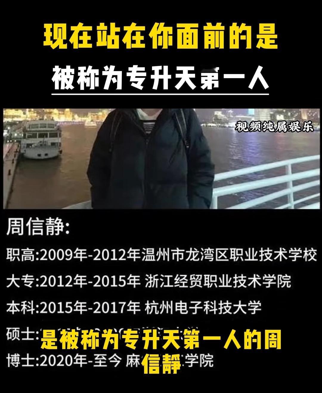 专升天,从职高到麻省理工。 (如图所示)周信静,2009年曾经考入职高,结果在职高第三年就突然醒悟了,开始了从学渣到学霸的逆袭,一路努力,最后进入了麻省理工学院。学习是终身的事情,很多国内家长强压孩子,早起跑,结果后劲不足。