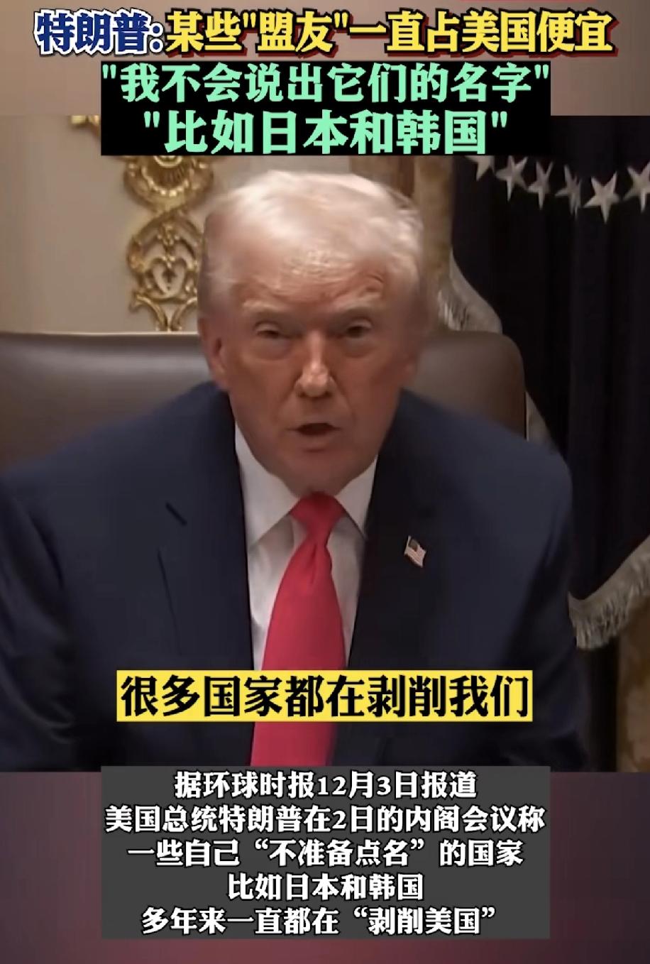 特朗普这是旁敲侧击日韩该交保护费了,而且得加钱,还把以前的老账账本翻出来说自己亏了,同时也是暗示欧洲,现在老美喝不到对手的血壮大自己,那削弱自己盟友壮大自己也一样嘛!盟友越弱越依附于他。 就像欧洲现在老美要跳出来把烂摊子扔给欧洲,还说以前吃亏了,现在调停俄乌战争想两头吃。 而日韩就更简单,韩国实力弱乖乖的,小日子想法多,一个个首相都像傻子一样装傻充愣,特朗普就弄个女首相果然就和那些暴躁女司机有一拼,小日子刚上桌,这特朗普就王八念经要加钱。