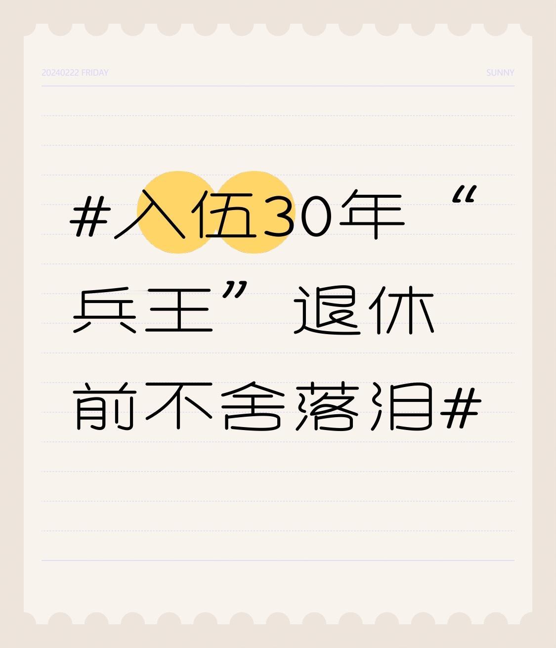 入伍30年“兵王”退休前不舍落泪 刷到一个入伍30年“兵王”退休前不舍落泪的视频。30年啊,人生能有几个30年,他把青春都献给了部队。那无声的20秒里,满是对部队的眷恋。想想看,30年的时光,部队早已成了他的第二个家,战友就是他的亲人。每天的训练、出任务,那些日子都刻在了他的生命里。他说“我的心在部队”,这不是一句空话,是30年的坚守与付出。看着他落泪,真的很动容,这就是军人的情怀,向他和所有为国家奉献的军人致敬!