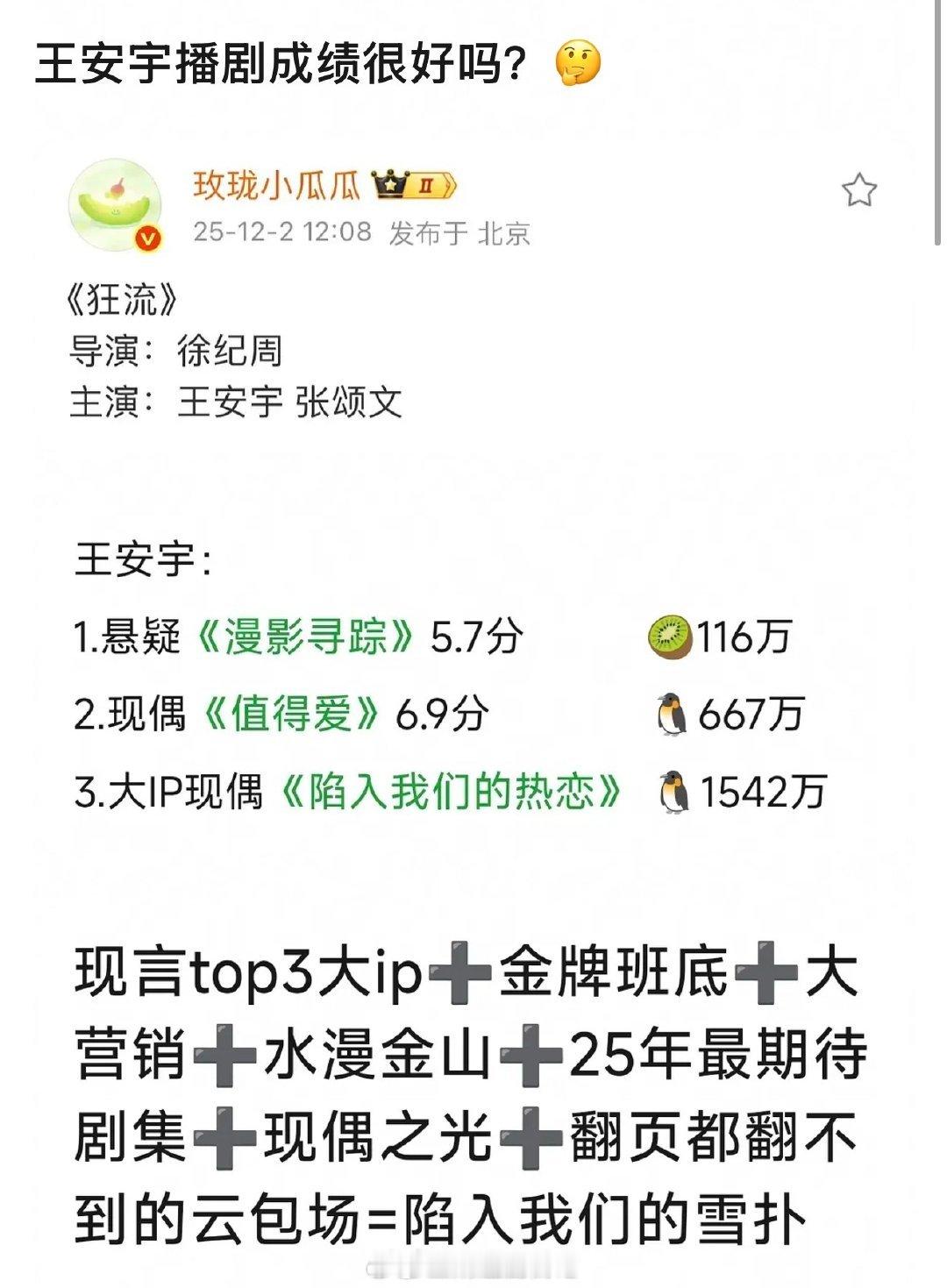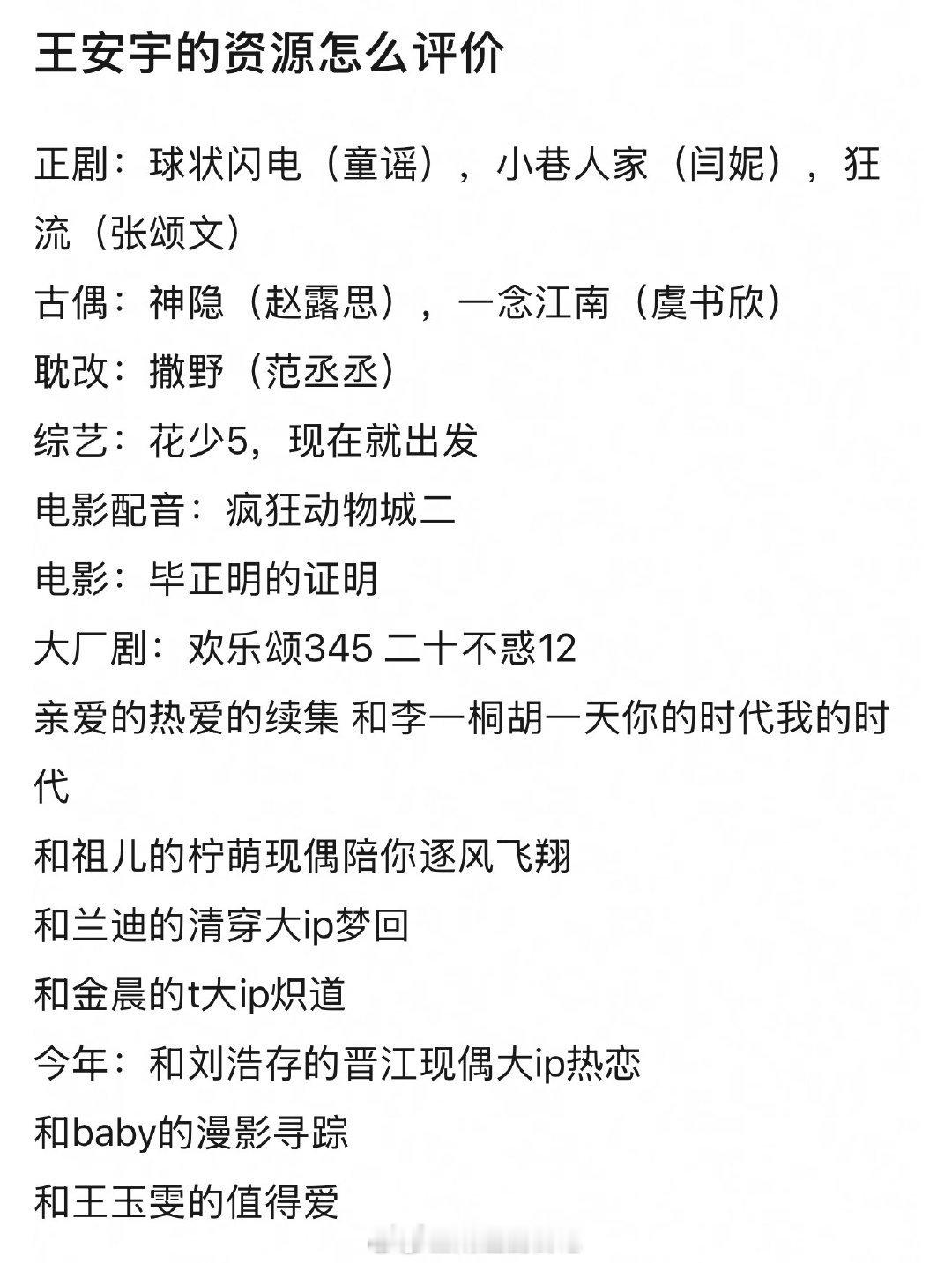 王安宇这几天讨论度很高诶🚬可以说任何好资源给到都是让人放心的水平…网友总结了王