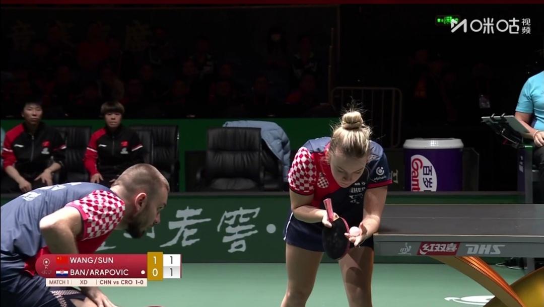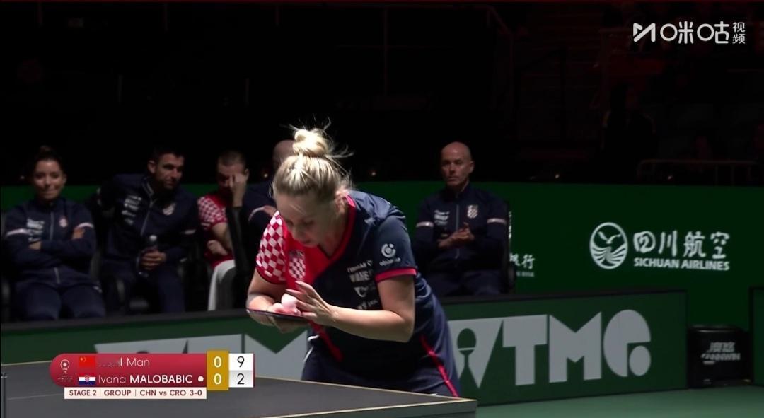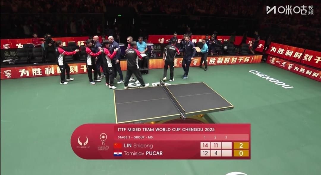 第二阶段循环赛第1轮,国乒8:0胜黑马克罗地亚队! 12月3日 13:00 成都混合团体世界杯第二阶段循环赛第1轮 国乒把成都混合团体世界杯当做洛杉矶奥运会的预演来打了! 国乒八名队员至今王艺迪和徐瑛彬还未上过场! 绝大多数时候是混双世一林诗栋/蒯曼、男单世一王楚钦、女单世一孙颖莎四个人唱主角! 要么“动漫”组合、要么“莎头”组合打双打! 另外两人打单打! 中国队8:0零封黑马克罗地亚队 第一盘混合双打 王楚钦/孙颖莎3:0(11-6;11-5;11-5)零封克罗地亚伊沃•本/阿拉波维奇。 第二盘女单 蒯曼3:0(11-2;11-5;11-5)零封克罗地亚马洛巴比克。 克罗地亚队变阵了,女单换了削球手马洛巴比克。岂不知道蒯曼不怕打削球! 第三盘男单 林诗栋2:0(14-12;11-4)零封克罗地亚普卡。 1.90米的普卡和小石头打了一局好球! 小石头,大心脏,落后不慌乱,爆分取胜! T2台 另一场比赛同时开始 韩国队Vs法国队 韩国队阵容不变! 法国队小布打混合双打,大布打单打了! 本文发稿时 韩国队5:1领先法国队!
