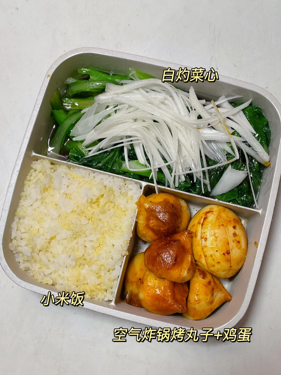 📍 小米饭+烤鱼丸鸡蛋+白灼菜心