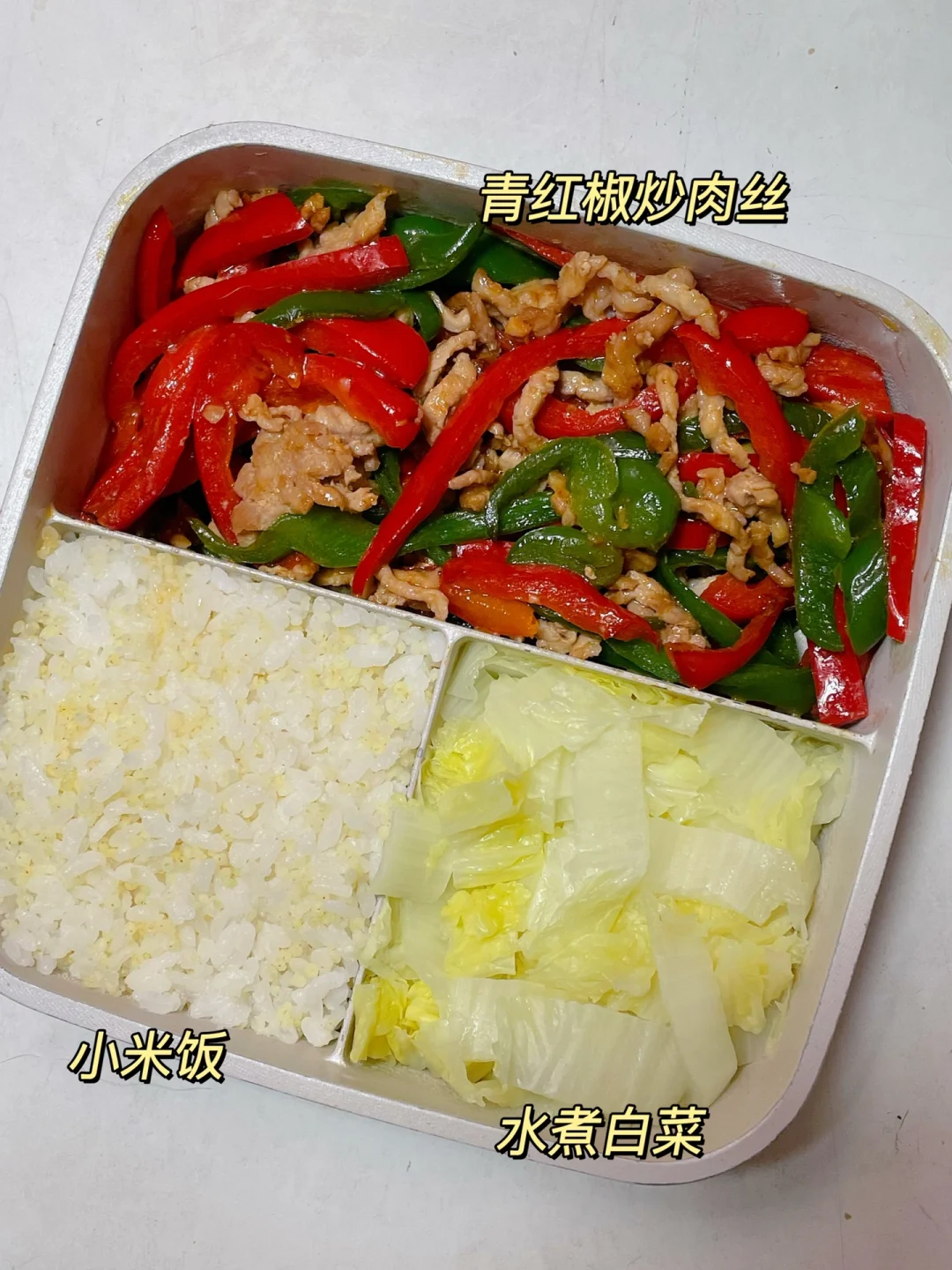 📍小米饭+双椒肉丝+水煮娃娃菜