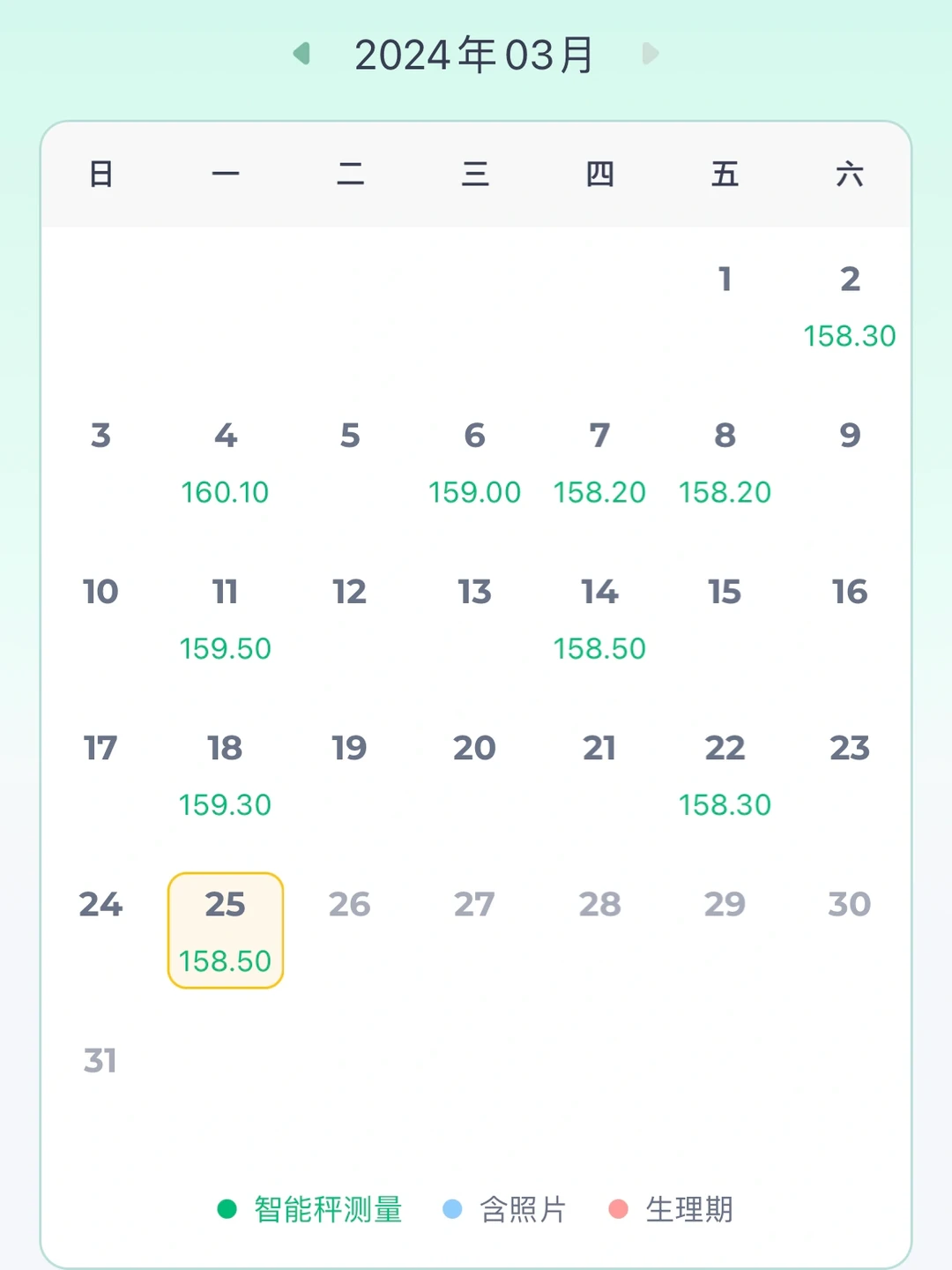 近期体重:158.5斤(2024.3.25)