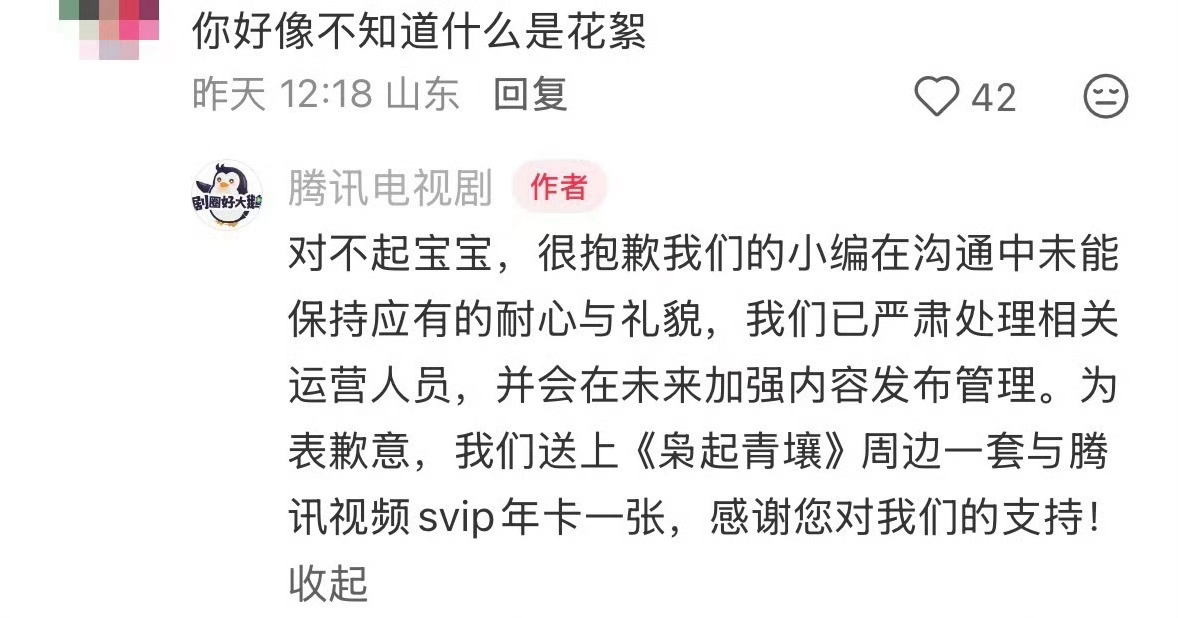 嘴硬被粉丝教训了!腾讯电视剧道歉腾讯电视剧怼粉丝外行指导内行