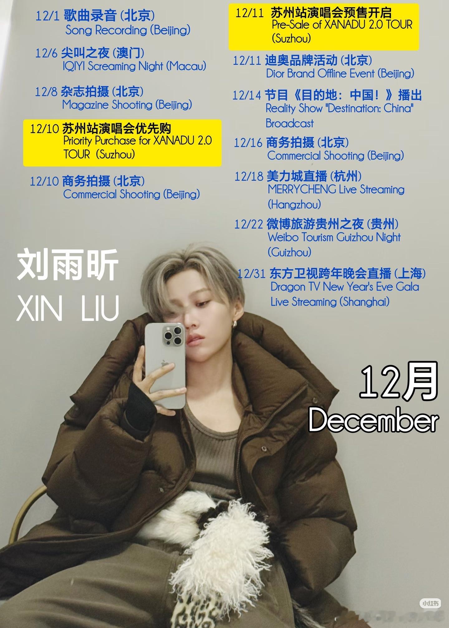 刘雨昕12月行程图!真的好忙,幸福了🈶跨年舞台
