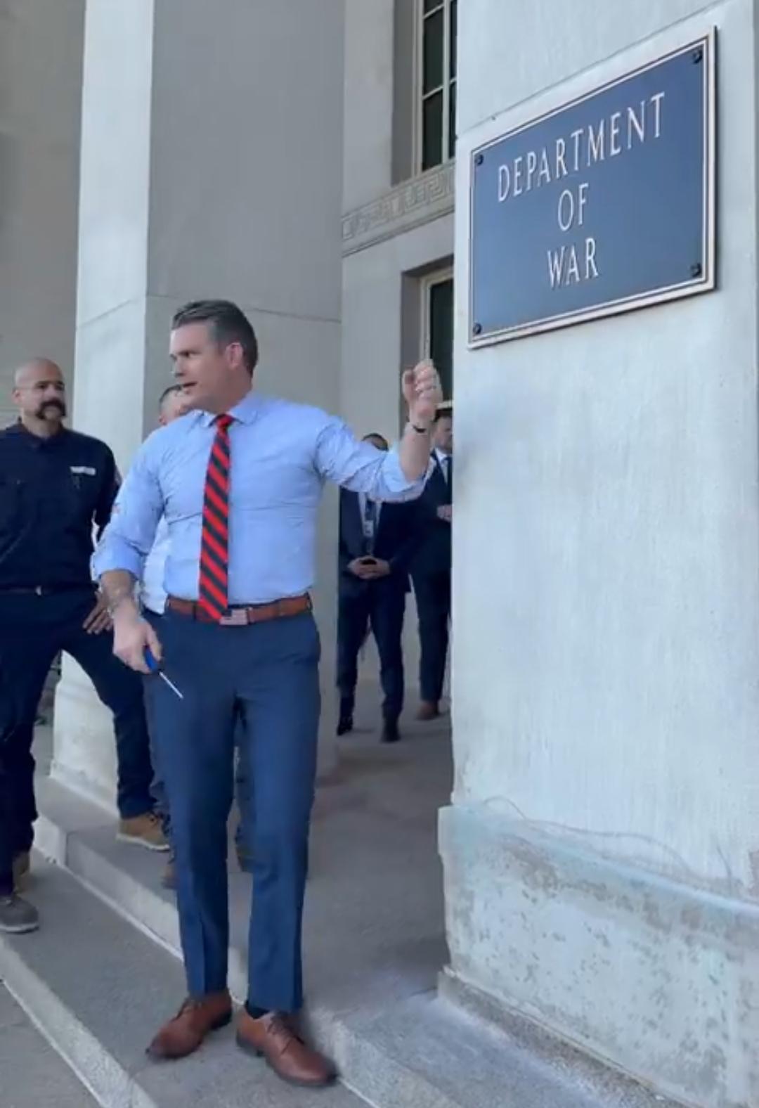 赫格塞斯亲自为“战争部”安装牌匾,话说,也不配个电动扳手,非要纯手工的仪式感,资