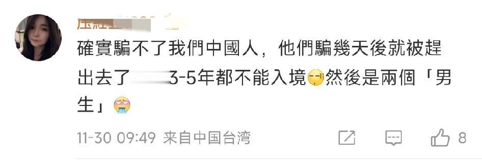 这俩外国人,能到中国台湾省骗到人?! 这俩外国人,要6万元新台币(约1.35万元人民币),这真是狮子大张口啊。人家乞讨,一般只敢写10元20元,或者要个路费啥的。 NTS是新台币简写。 为了骗到钱,还特地贴心的写了繁体字。 作为诈骗的祖师爷,这岛上的人能上你当?你这一套也太落伍了,人家电信诈骗玩的飞起,你这简直是在班门弄斧。我怀疑那盒子里的钱是他们自己放进去的。 台湾网友讲了,这确实骗不了我们中国人,他们骗几天后就被赶出去了。然后这俩人都是男的。仔细看了一下那个长发,面相、腿确实是男的,胸也没有。