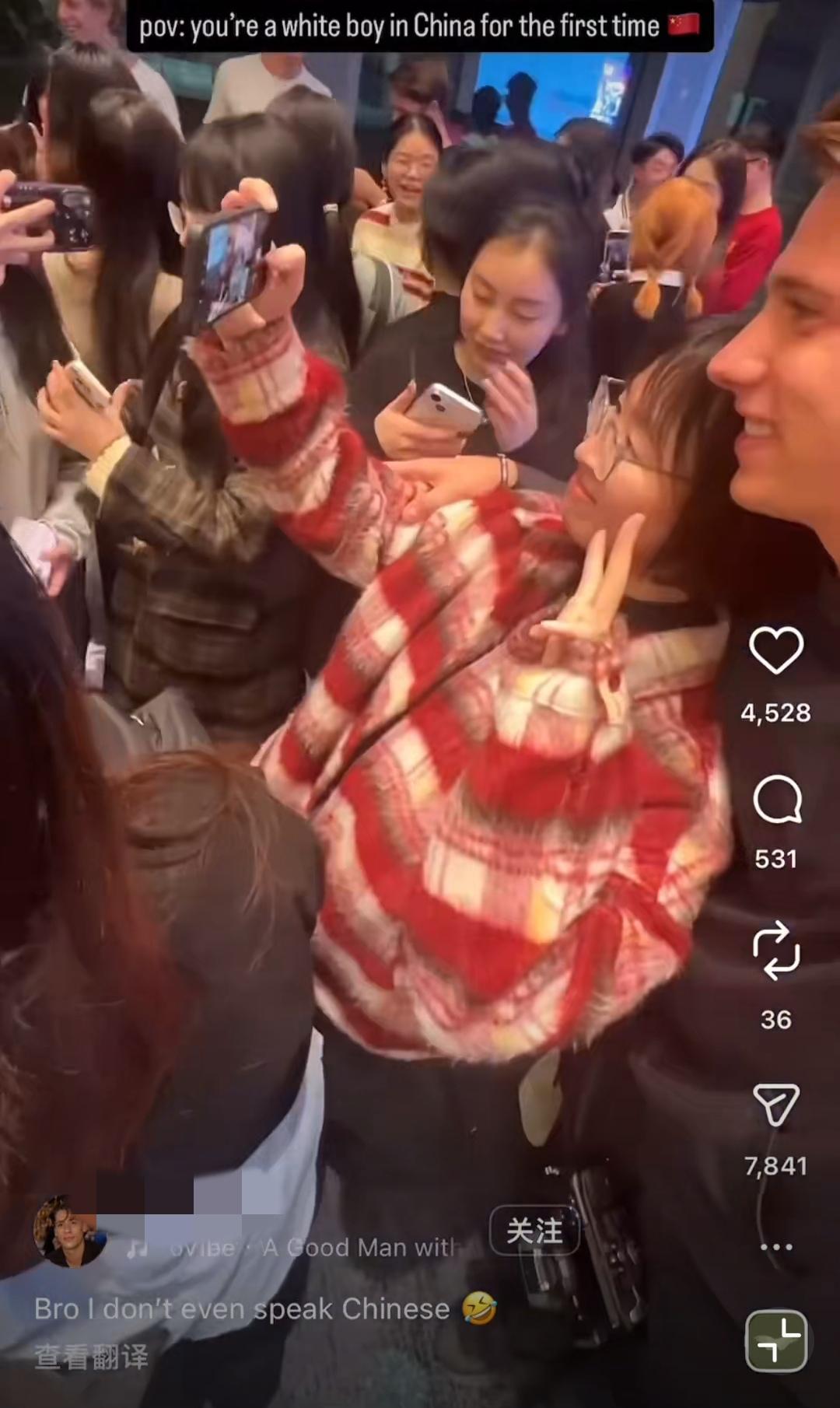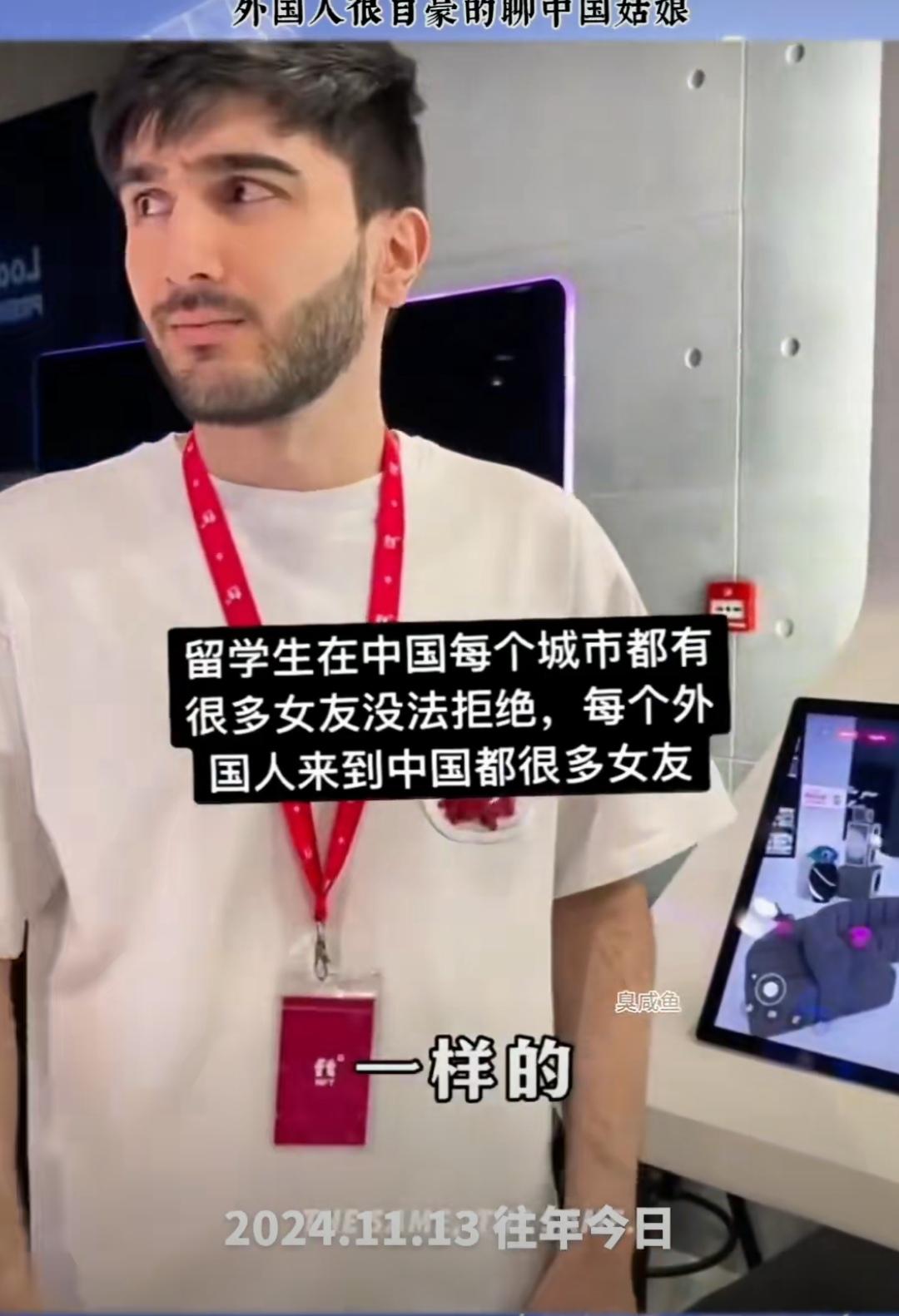 优秀!动动!开放! 外国白人男子第一次以白人男孩的身份来到东大:兄弟,我甚至不会说中文,一大堆东大女孩跑来和我合影。 一个胖女孩更是主动,兴奋的把男子的手抬起,把自己搂进他的怀里合影。 绝了! 另一个会中文的外国留学生说:每一个外国男人来到东大,一样的。每个人都有几个女朋友,每一个城市都有他的女朋友。 旁边的几个女子嘻嘻哈哈:你也是这百分之一。 男子:我是0%。 我震惊到无语……