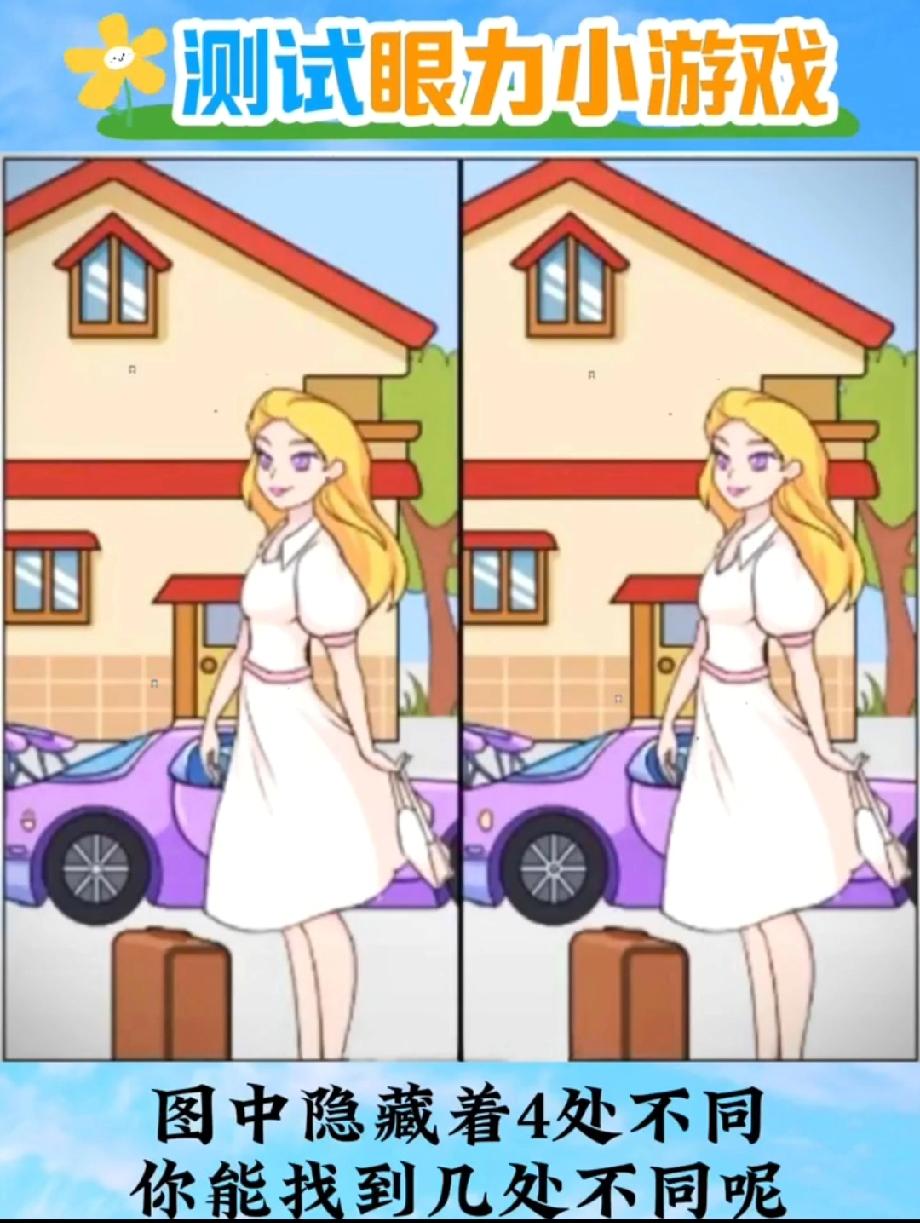 谁能找全4处不同?这美女房子图,我猜80%的人找不到最后1处!