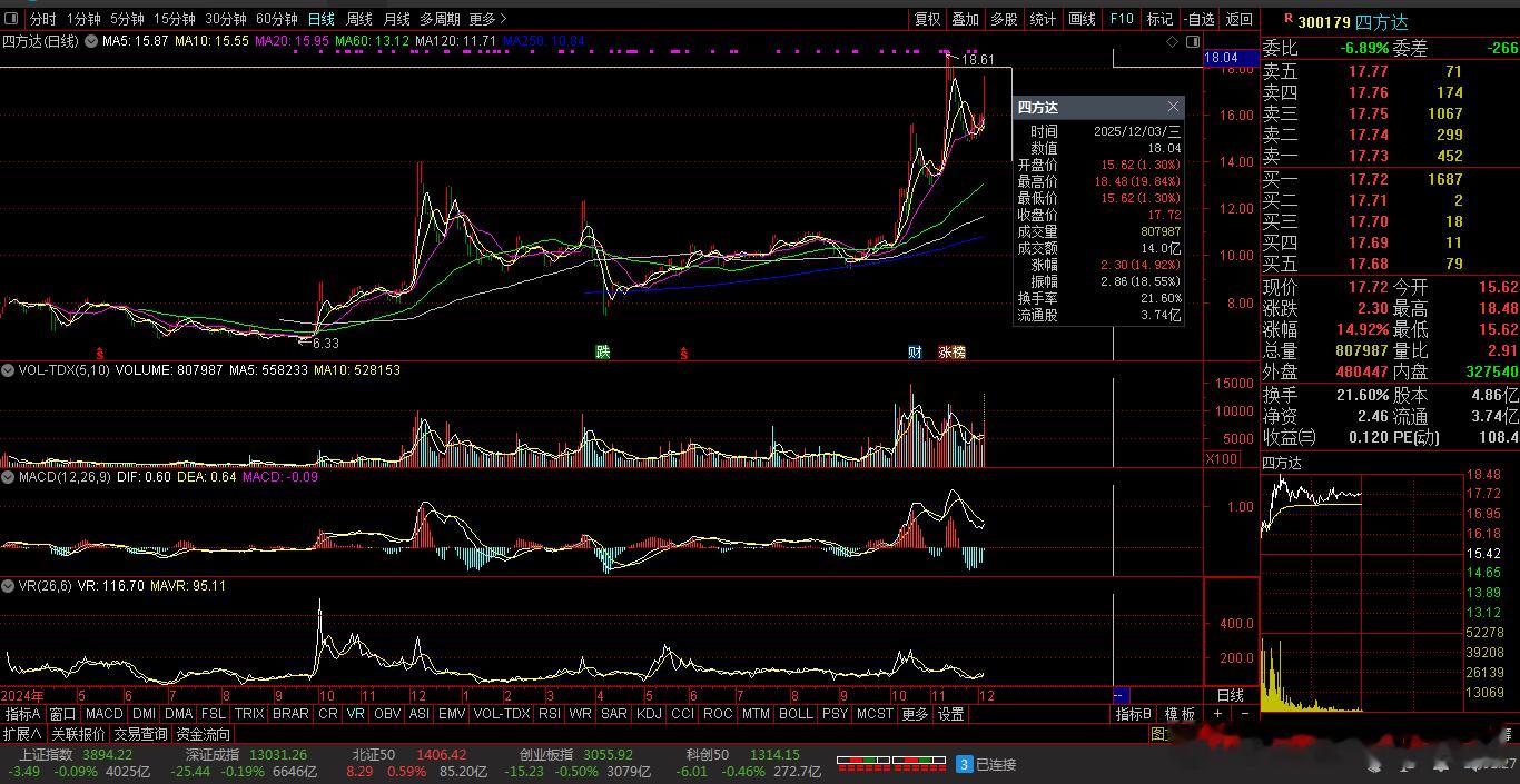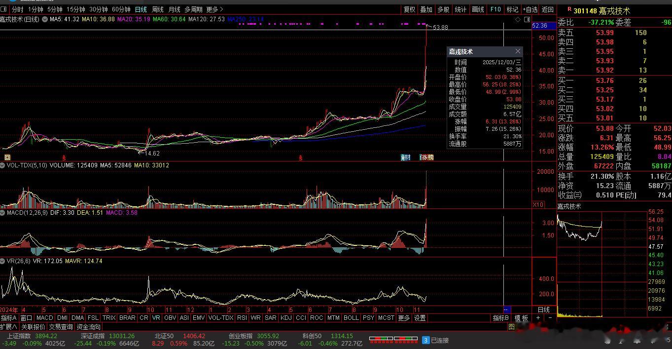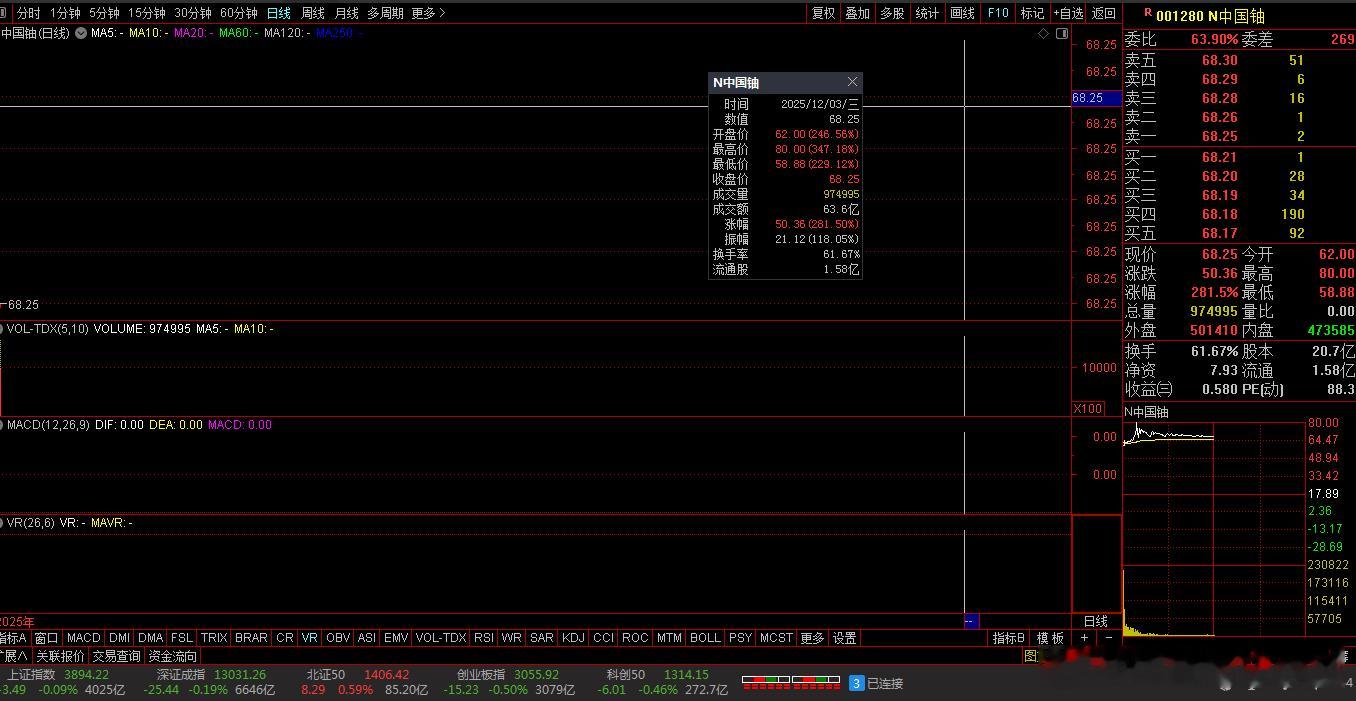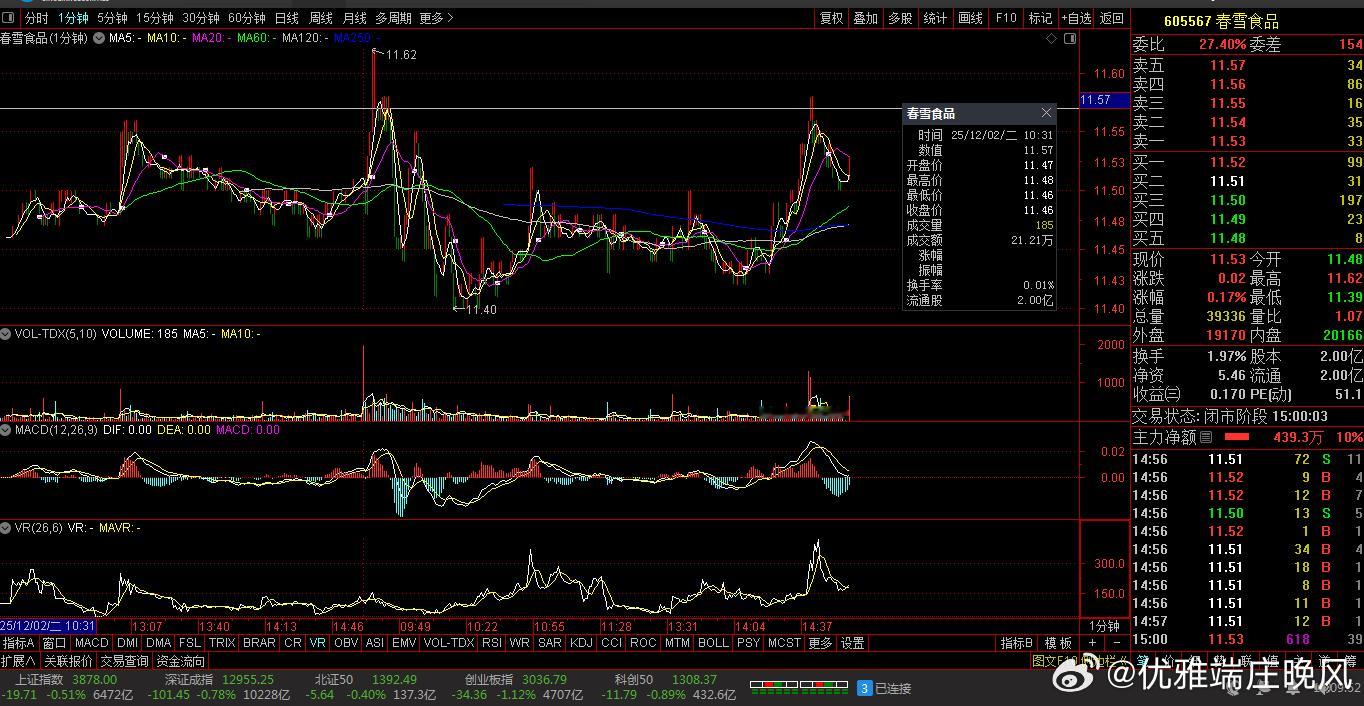 【财富晚茶】午盘透析(12.03):北证跌幅0.29%:酒店反弹影视回调导语:作者系《网易号》优质财经领域创作者。曾经原创作者和知名网易号旅游领域创作者。大跨度行业等的写作,颇受网友喜爱。作品发表于2025.12.03.12:18 优雅端庄晚风。(标题照片:全球最佳酒店:第一名:法国巴黎La Réserve酒店)【内容概述】今日股市午评:截止11:30:沪指:贡献2根阳线1阴线。深指:贡献1根阳线2阴线。沪指跌破:阻力位:03908点。沪指跌破:支撑位:03888点。深指跌破:阻力位:13132点。深指跌破:支撑位:13011点。追寻盘面:沪弱深强做多夭折,尾盘中位窄幅震荡。一、透析市场:风口公司,上下起伏605567 春雪食品 盘中 02涨1、突破五年箱底视野盘面:前期见顶,超越在即:2025-12-03 截至11:30:股价报收:11.53元。股指上涨:0.17%。成交总量:39336手,成交金额:4521万元。总换手率1.97%,观总市值:23.06亿元。流通市值:23.06亿元。2、白羽鸡肉龙头主营业务:白羽鸡鸡肉食品研产和销售。公司品牌:中国高品质鸡肉调理品细分行业龙头企业。3、营收净利优秀业绩好转:2025-09-30 三季度报:公司营收:19.1167亿 同比增5.95%。公司净利:3387.0625万 同比增1320.44%。二、沪深绿盘:空方强势,悲剧股市今天目击:沪深北市:早盘:沪指:低开一涨,三跌二涨。深指:高开一涨,一跌三涨。尾盘:一跌一涨,中位绿盘。看点之一:沪深北指:沪指弱势:盘中低开:盘中低开:窄幅震荡。创科创50:指数走低。看点之二:一枝独秀:北证50指:逆市上扬。看点之三:沪深北市:半日成交:10756亿元。盘面追踪:3563股飘绿。三、沪深阴棒:个股弱势,亏钱效应沪深追踪:截至午间:市场收盘:沪指跌0.09%报3894.22点,深指跌0.19%,创指跌0.50%,北证50指涨0.59%,沪深北市:10756亿元。四、盘面观察:酒店脉冲,影视回调1、板块扫描透析沪深板块:板块走强:酒店有色、煤炭、工程机械等。板块走低:影视、传媒、酿酒、地产、半导体、保险等。概念活跃:培育钻石等。2、个股涨跌起伏沪深北市:多空遭遇。1739股票上涨,45涨停板。3563股票下跌,8股跌停板。沪深北市:合计成交:10756亿元。午盘视野:沪低深高意见分歧,尾盘多空窄幅拼杀。五、沪深涨跌:三甲前茅,安不忘危1、今日涨幅谁家主旋律:天经地义:风口股票涨停板001280 N中国铀 300179 四方达 301148 嘉戎技术第一、涨幅榜眼排行榜-1:001280 N中国铀主营业务:天然铀采冶贸易-放射性共伴生矿产资源综合利用研产和销售。公司品牌:中国放射性共伴生矿产资源开发利用行业健康可持续发展的领军企业。排行榜-2:300179 四方达主营业务:超硬材料研产和销售。公司品牌:国内规模最大的聚晶金刚石(PCD)研发生产头部企业。排行榜-3:301148 嘉戎技术主营业务:膜分离装备-高性能膜组件-高浓度污废水处理的研产和销售。公司品牌:全球领先的膜技术公司。第二、综评榜技术看盘-1:301148 嘉戎技术。潜力股票-1:301148 嘉戎技术:全球领先的膜技术公司。风险股票-1:暂时没有:即无301092 争光股份。2、今日跌幅谁家主旋律:摇摇欲坠:弱势股票涨停板300344 *ST立方 920035 精创电气 688260 昀冢科技跌幅榜-1:300344 *ST立方主营业务:智能软硬件-数字化智能的研产和销售。公司品牌:新型数字基础数字科技云服务商。跌幅榜-2:920035 精创电气主营业务:冷链设备智能控制器-医药与食品冷链监测记录仪等研产和销售。公司品牌:冷链温湿度控制市场份额中国市场第一全球市场前列。跌幅榜-3:688260 昀冢科技主营业务:精密电子零部件的研产和销售。公司品牌:摄像头光学模组CCM-音圈马达VCM精密电子零部件民营领先企业。六、创作不易:优质网易,财经作者投资投机迷茫之中:给予尽可能有帮助:资本市场风险自负。(优雅端庄晚风《网易号》财经领域创作者和原创作者 违者必究)