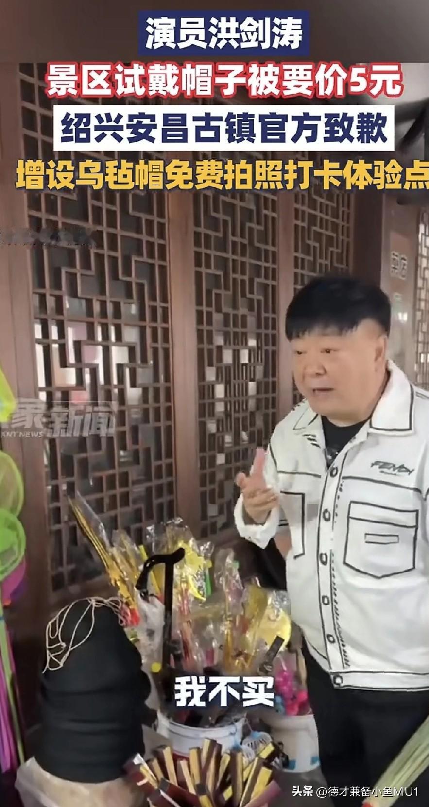 演员洪剑涛在景区试戴帽子被索要5元,此事引发网友热议。试戴帽子收费已进行公示,属于明码标价,这应该不违规吧?没必要用自己的价值观去评判商家!我认为景区也没必要因名人的感受而道歉。 要是洪剑涛只是普通百姓,而非演员,文旅局会关注他吗?这就是名人效应。要是普通老百姓发这样的视频,会受到如此重视吗?影响如此之大。不过,确实需要更多名人传播正能量。如果不真心想买帽子,就不适合随便试戴,头发上有油,试戴几次后能闻到头油或洗发水的味道。其实有些人就是戴一下帽子,拍个视频就走,商家也很恼火。人家故意收5块钱,并非为难他,就是不想让他戴个帽子拍个视频就走,不存心买还戴什么。换作我做生意,也不会让其试戴。若事先表明肯定会买一个,那随便戴。 做得过分了,大多数人不想买帽子,却想戴上拍照留念,商家收点费用也在情理之中。比如骑马拍照收费就合情合理,难不成谁骑马拍照还得买匹马?所以景点的一些道具适当收费是可行的。 对此大家怎么看?