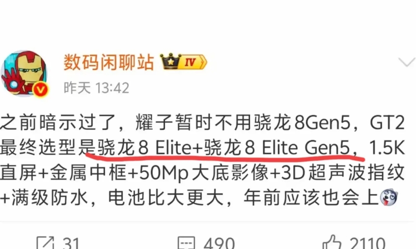 性能和电池这两块直接拉满了,芯片骁龙8至尊版,电池容量还没具体公布,但肯定会超过9000mAh