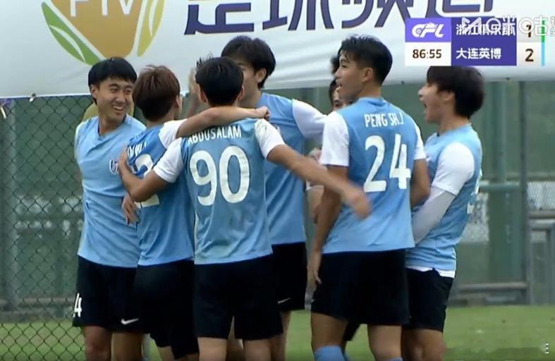 在中超U21联赛第5轮比赛中大连英博朱鹏宇破门闫奕涵绝杀2比1战胜强队浙江U21