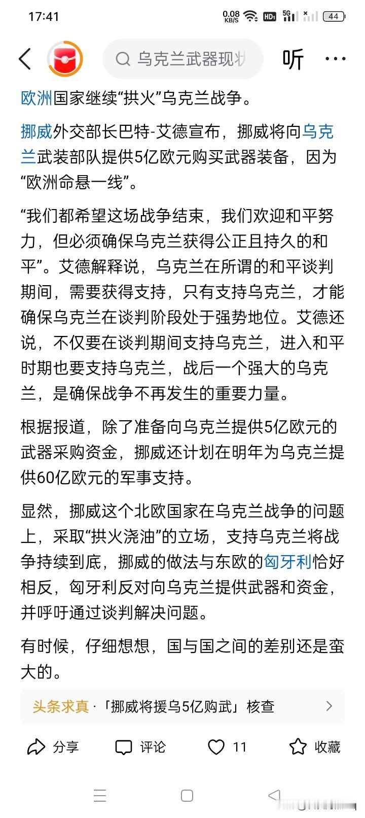 挪威有很多钱! 挪威外交部长巴特·艾德宣布,将向乌克兰提供5亿欧元,购买武器弹药