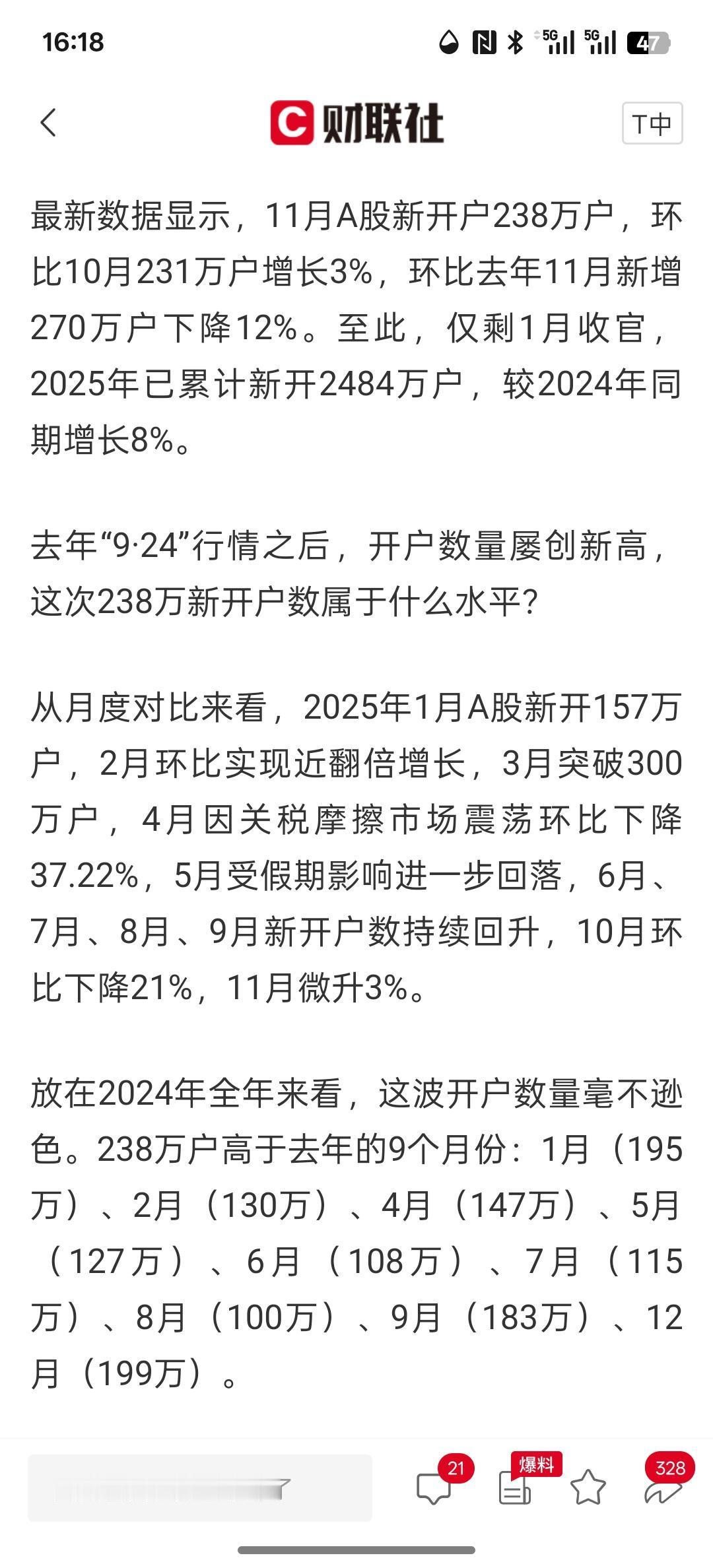 增量资金正在路上,A股新增开户已近2500万户,11个月增量接近去年全年。在A股市场开户的人群越来越多,而且现在银行里面的大额存款利率持续下降!包括大额存款也开始停止销售,而且存款利率持续下调,那么很多有大资金的人大概率是会进入中国资本市场,也就进入股市投资理财会变成更多未来储蓄搬家的地方!毕竟现在钱存在银行里面的利率越来越低,100万一年才多少钱,按照1.5的利率来算,根本跑不赢通货膨胀!那银行里面存定期大额存款利率都那么低,那很多人就只能选择取出存款进行投资!拉动投资,拉动消费经济,自然就起来!