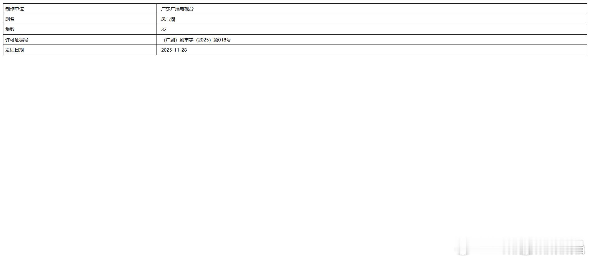 电视剧风与潮过审下证 电视剧《风与潮》过审下证,发行许可证是(广剧)剧审字(2025)第018号。