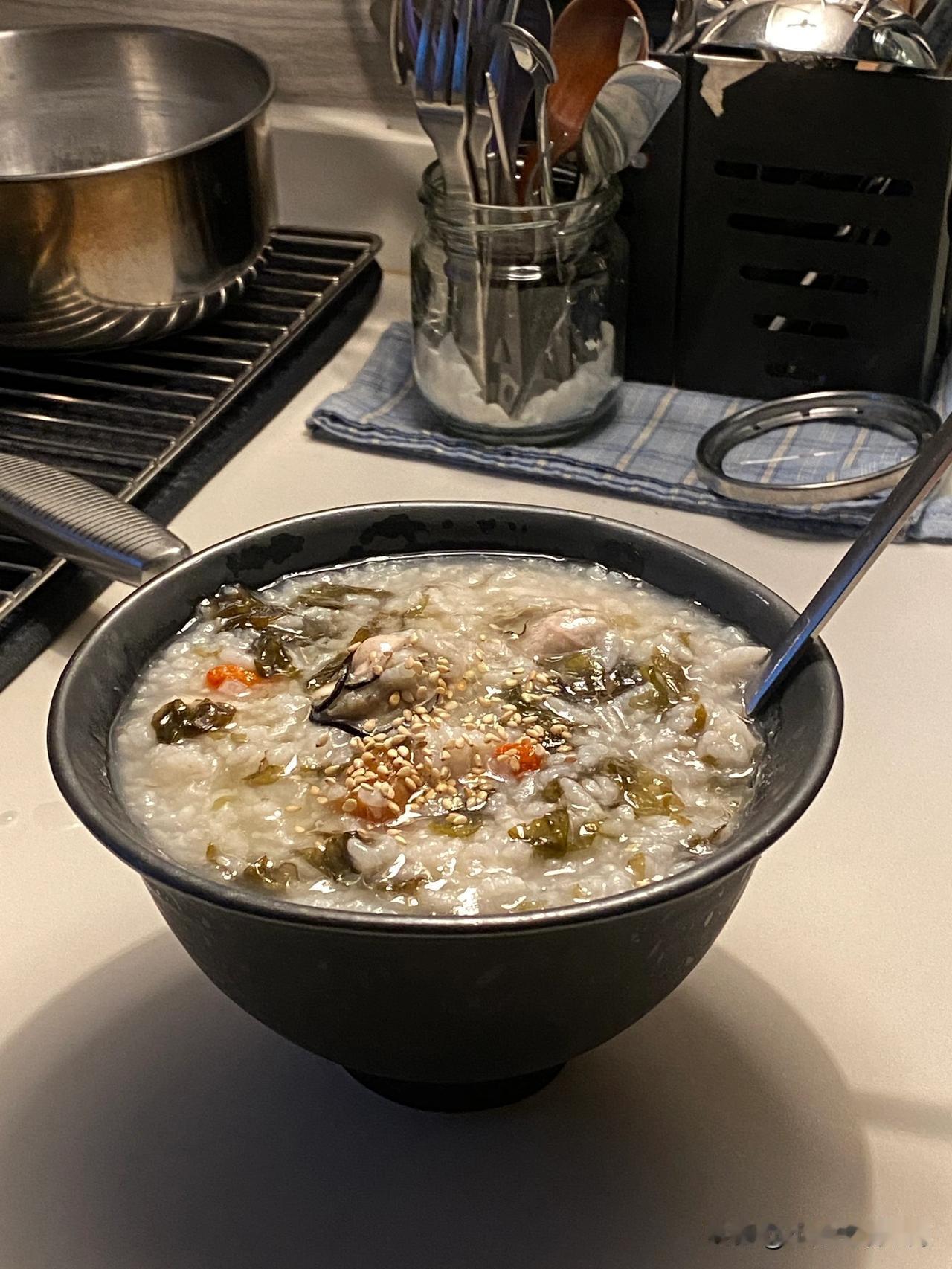 即使生病也要吃好吃的饭,今晚做菜干生蚝粥🥣