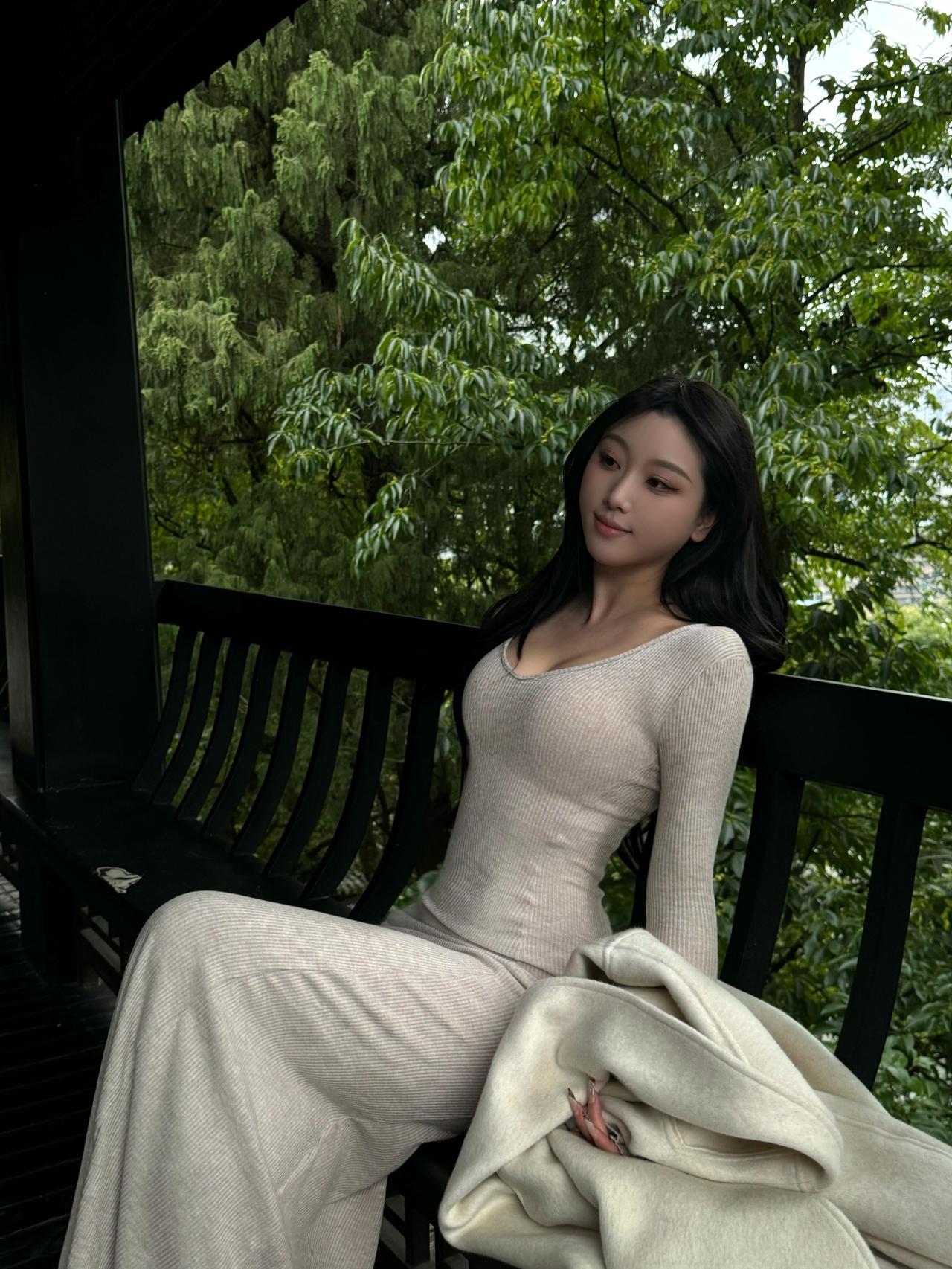 八声甘州·林间闲坐 作者/朱珠 正林阴叠翠覆闲台,风轻惹衣香。看云垂衫色,柔丝贴体,暖玉凝光。手挽绒裘半落,鬓发绕肩长。斜倚栏杆侧,眸底春藏。 漫数枝头新叶,趁晴光恰好,懒理行囊。任裙裾垂地,鞋尖点微凉。笑人间、繁嚣皆远,只一襟、清味入诗行。凭栏久,觉心湖静,偷得韶光。