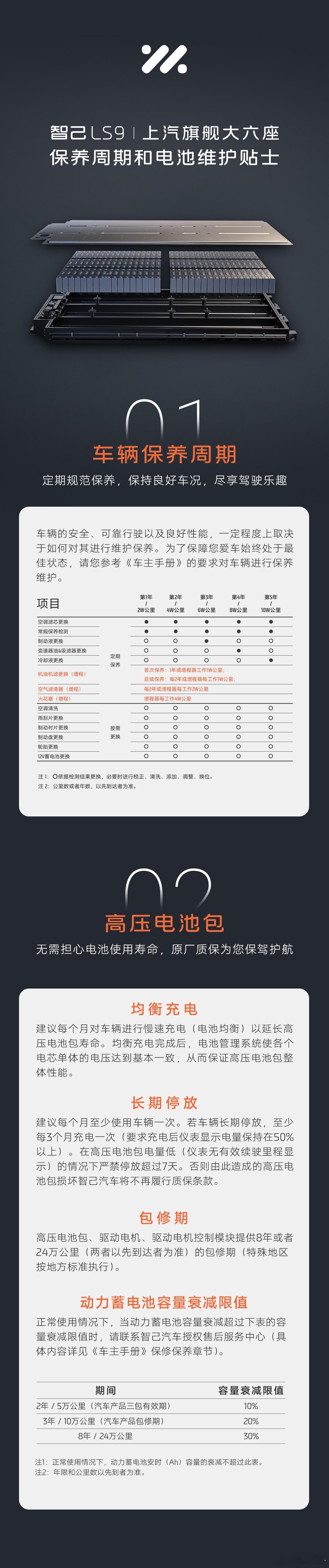 智己服务变细致了。上次买车的群,交付完之后存在感就不强了,这次还特意给发了一张保养手册。正好也可以让很多不了解增程车保养的朋友看看。以LS9为例,2、4、6、8w...每2万公里保养一次,主要就是更换空调滤芯。至于汤汤水水的:60000km——更换制动液80000km——更换变速器油+滤芯100000km——更换冷却液增程器需要特殊注意:首保——1年或10000km后续——每2年或10000km空气滤芯——每2年或20000km火花塞——每40000km