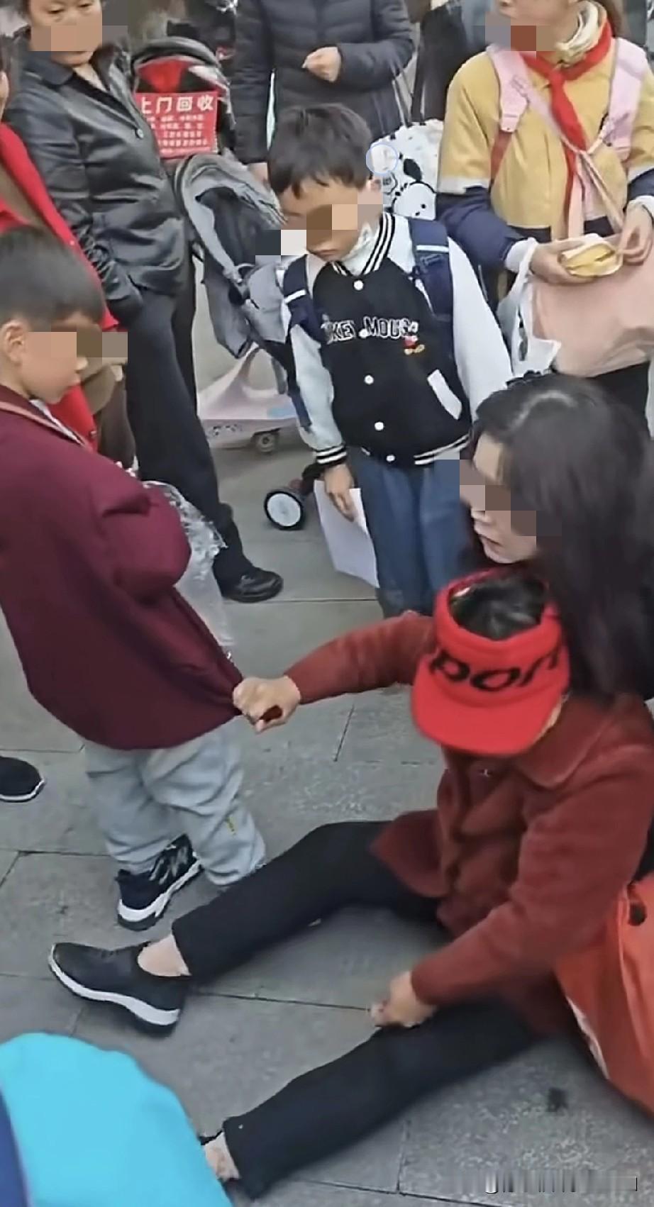 老太太在学校门口碰瓷小学生。 只见一位老奶奶坐在地上,双手紧紧揪住一名小学生的衣