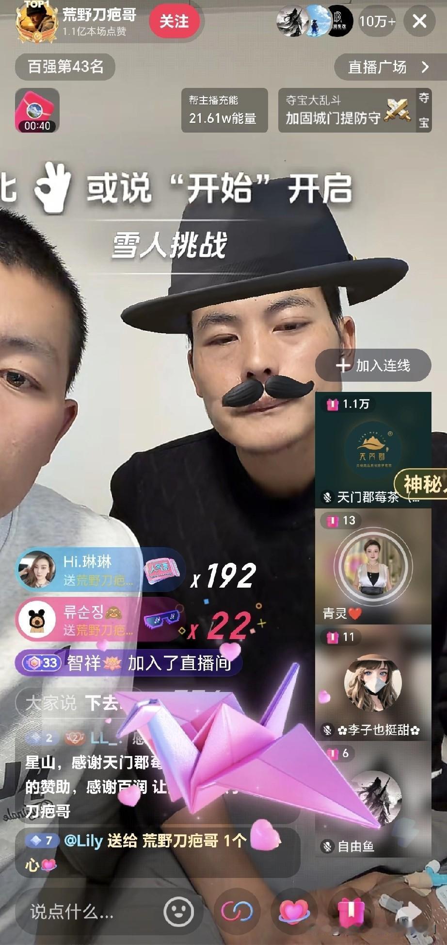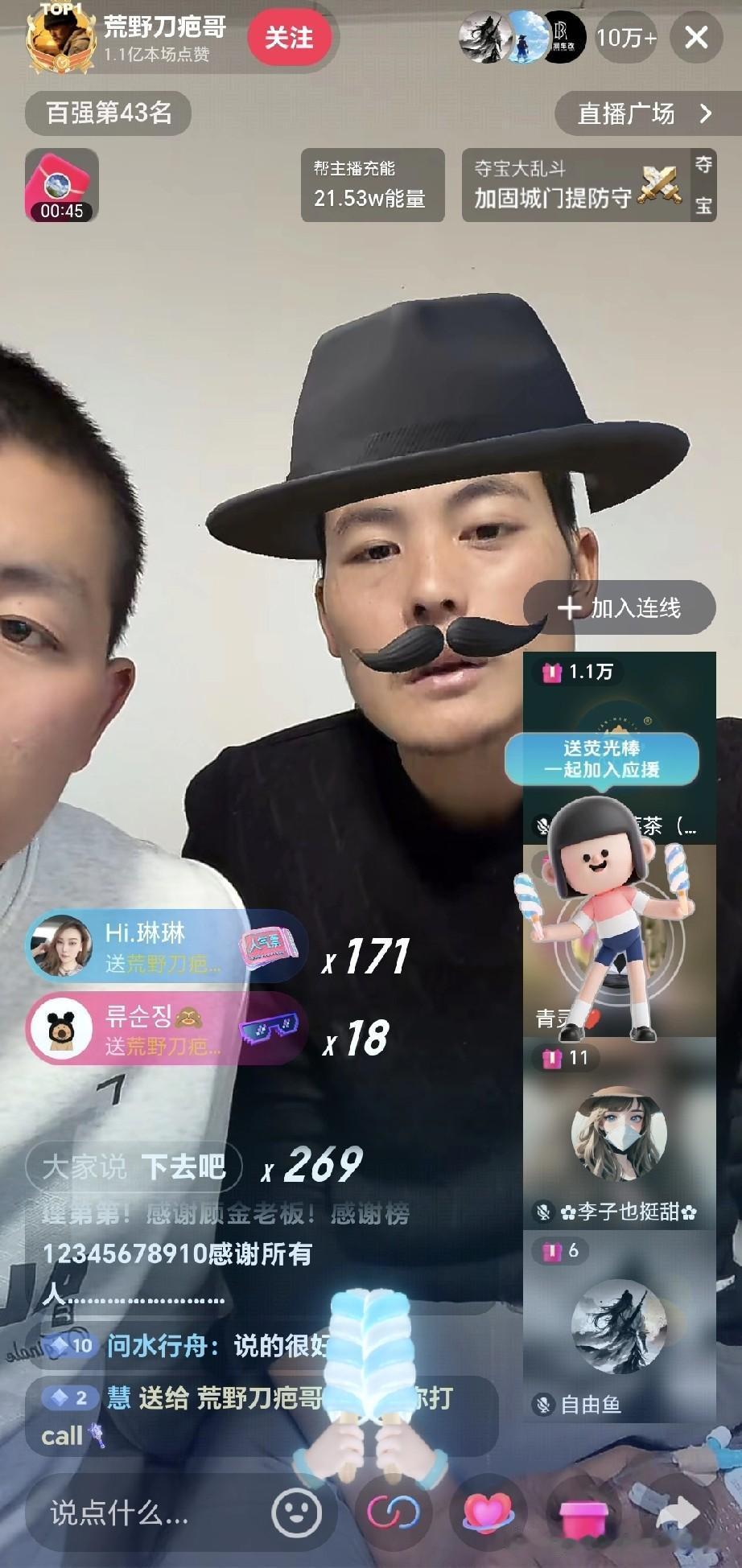 刀疤哥退赛后直播,礼物满屏飞舞,小时榜两项皆居首位,点赞量破亿。八点档直播更是登上百强榜首,实在太厉害了!其直播间人数超10万,粉丝量也涨到了35万。又一位网红即将诞生,下一步是不是要开启带货之路了呢?他今晚一场直播的收入,或许抵得上别人一辈子的所得。