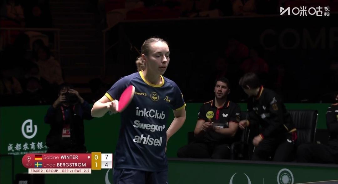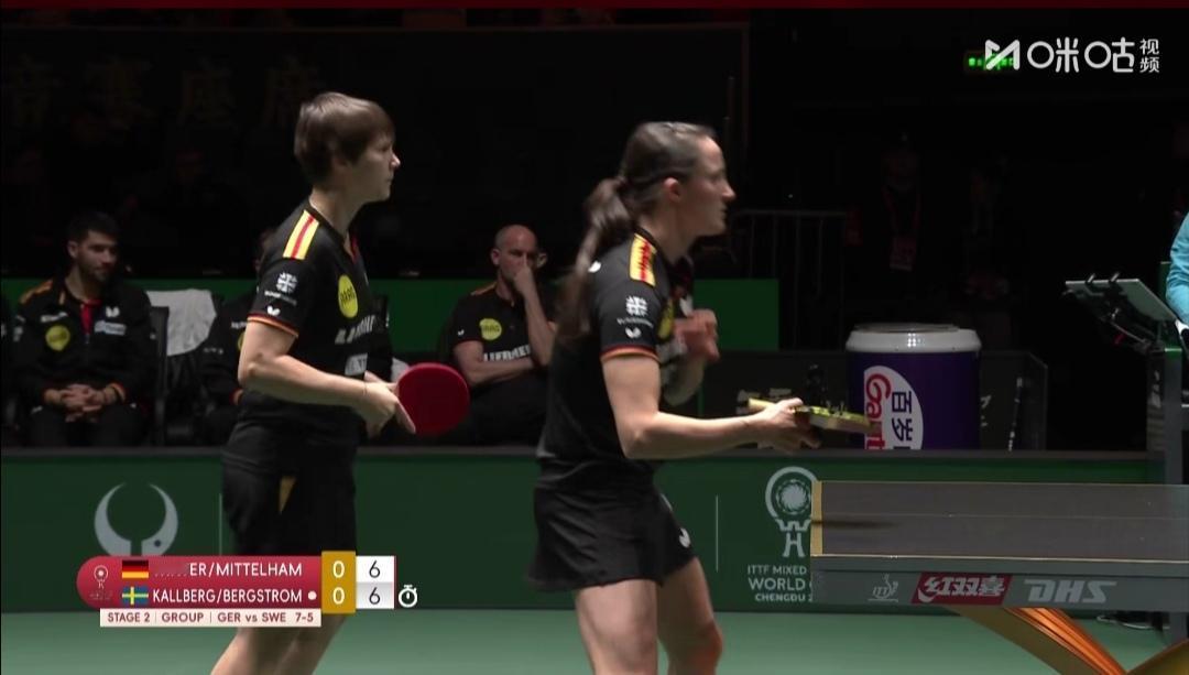 中、日、韩、德原前四种子队悉数取得第二阶段首轮胜利! 中国队8:0克罗地亚队 韩国队8:7法国队 日本队8:2中国香港队 德国队8:5瑞典队 成都混合团体世界杯第二阶段第1轮,晚间两场。 德国队8:5瑞典队 第一盘混合双打 弗朗西斯卡/考夫曼2:1(18-20;11-8;11-4)逆转胜瑞典卡尔森/C•卡尔伯格。 第二盘女单 温特1:2(11-13;11-8;14-16)负瑞典伯格斯特隆。 第三盘男单 邱党3:0(11-9;11-9;18-16)零封瑞典安东•卡尔伯格。 第四盘男双 邱党/杜达1:2(10-12;11-8;10-12)负瑞典安东•卡尔伯格/卡尔森。 第五盘女双 温特/米特兰姆1:0(12-10)胜瑞典伯格斯特隆/C•卡尔伯格。 ~~~~~~~~ 中国香港队2:8不敌日本队 第一盘混合双打 黄镇廷/杜凯琹1:2(13-11;5-11;16-18)负日本松岛辉空/大藤沙月。 第二盘女单 朱成竹1:2(15-13;7-11;8-11)负日本张本美和。 第三盘男单 林兆恒0:3(6-11;4-11;3-11)完败于日本张本智和。 第四盘女双 朱成竹/吴咏琳0:1(7-11)负张本美和/早田希娜。 12月3日第二阶段循环赛,第1轮赛毕,原前四种子队中、日、韩、德悉数取得首轮胜利!