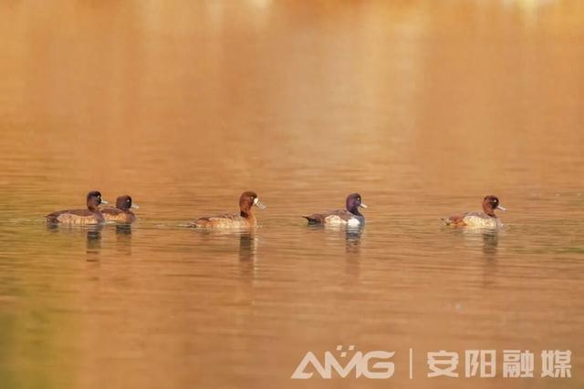 斑背潜鸭在湖中游弋(左三)(安晓朗摄)