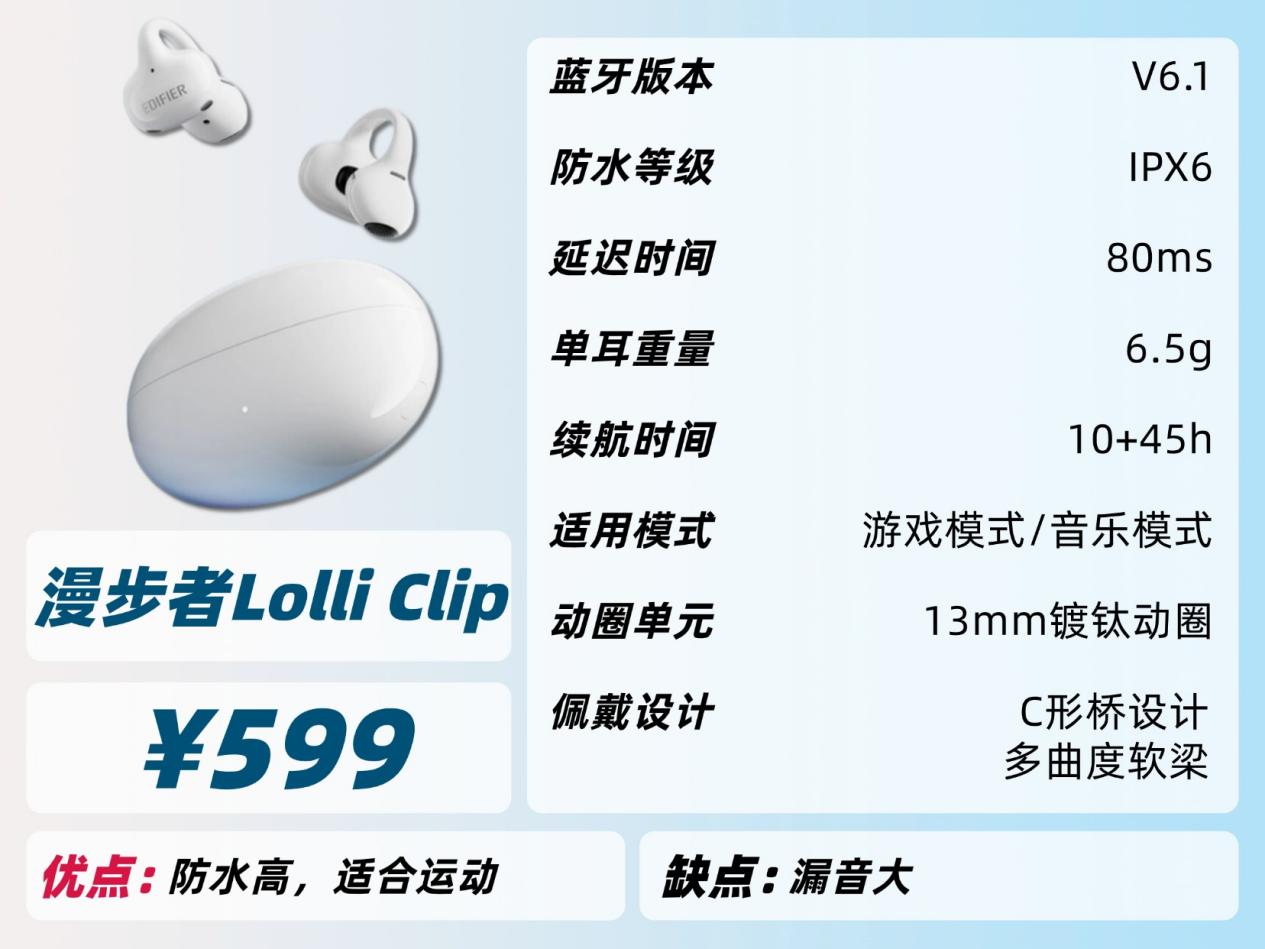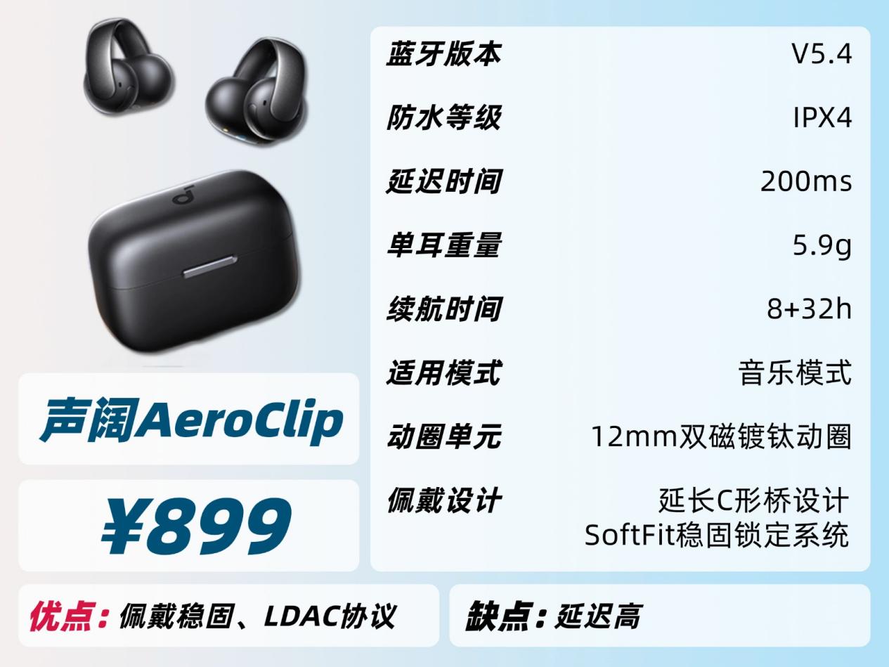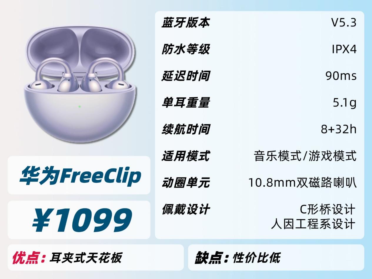 推荐理由:耳夹式耳机公认天花板,适合同生态用户。