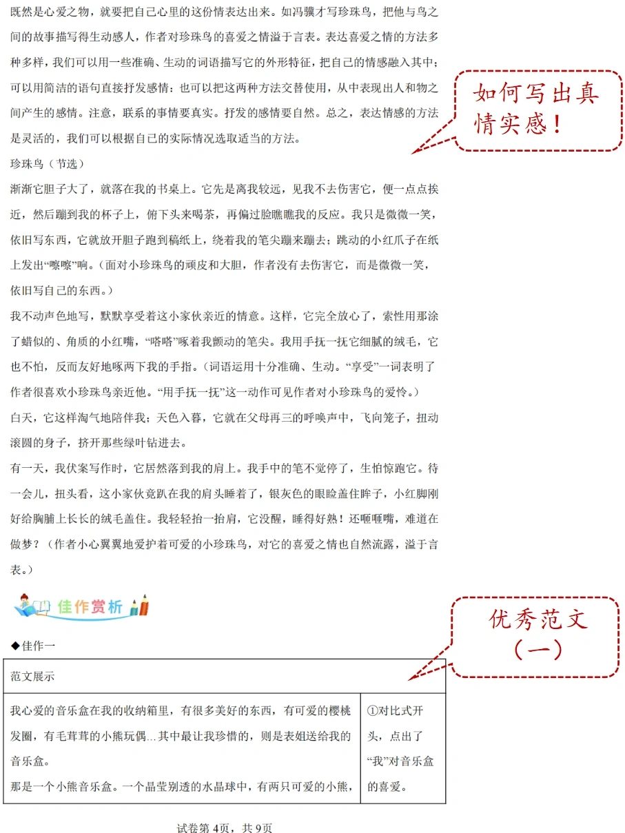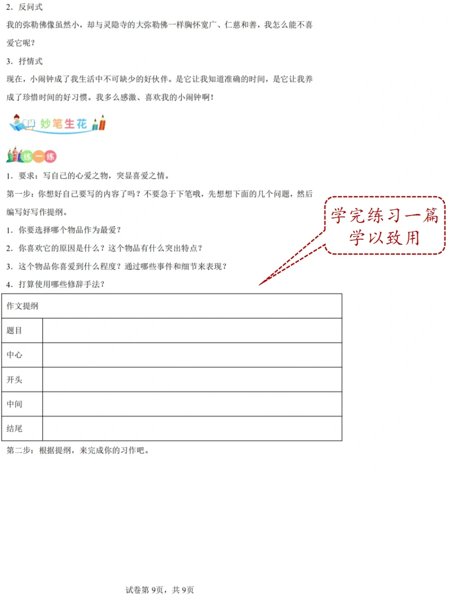 (单元作文要求与课内课文主旨、手法相关,学完课文后再写效果更好)