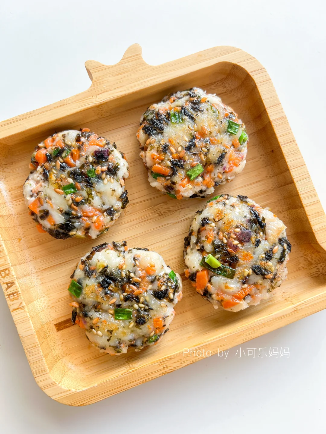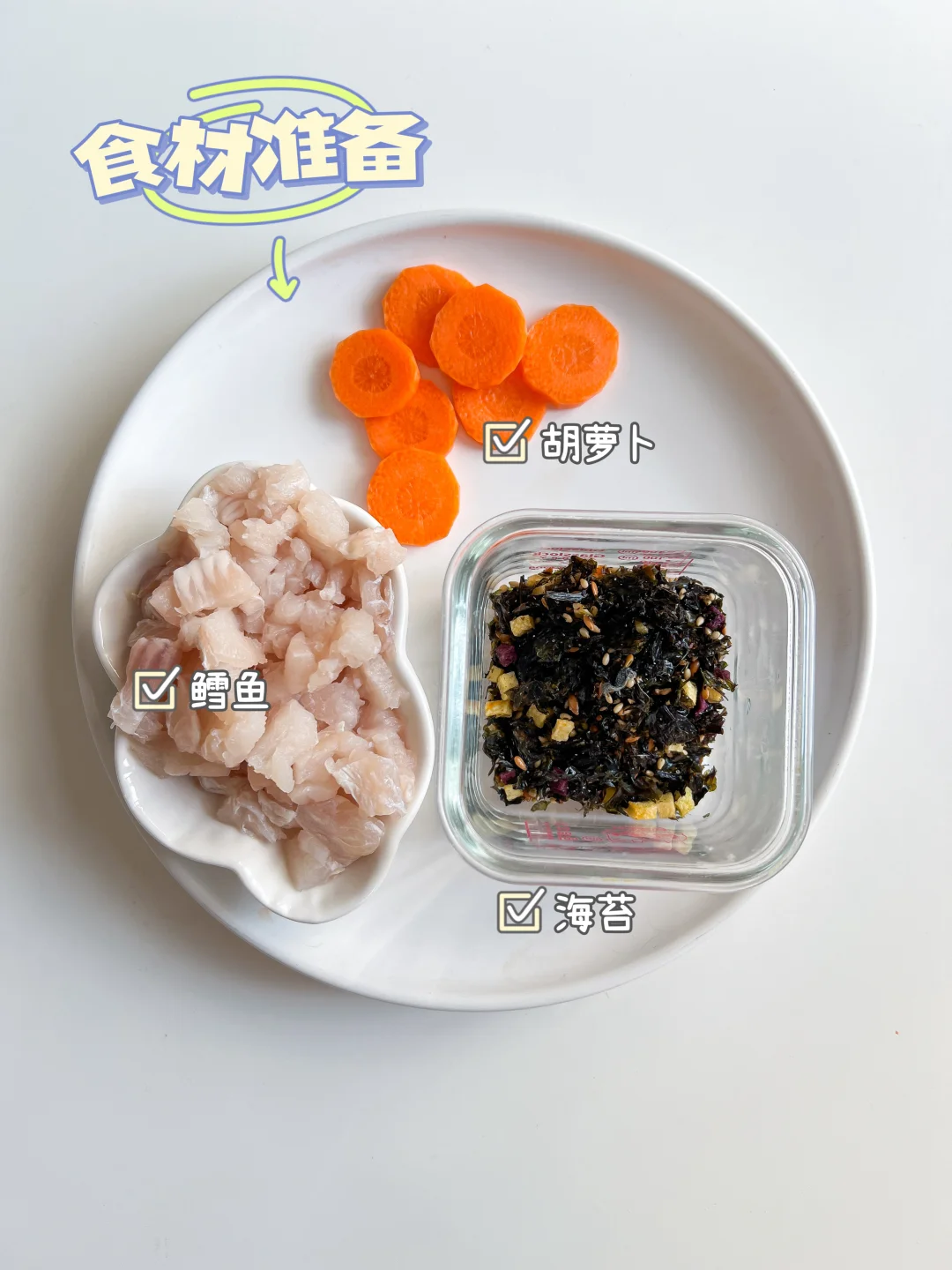 有没有不爱吃鱼肉的宝宝,今天这个海苔鳕鱼饼一定要试试,海苔不仅和鲜虾搭配好吃,和鳕鱼搭配也是巨好吃,软嫩鲜香,一点也不腥,做法简单,营养丰富,轻松搞定饭渣宝宝,麻麻们快试试 🥣食材 鳕鱼 胡萝卜 海苔碎 🔎详细做法步骤请看图文哦 ✅食材大小根据宝宝咀嚼能力调整