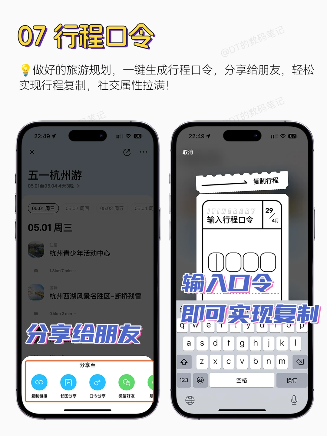 所以你也可以在旅行结束后,将行程以口令形式分享给朋友或朋友圈,满满的成就感!
