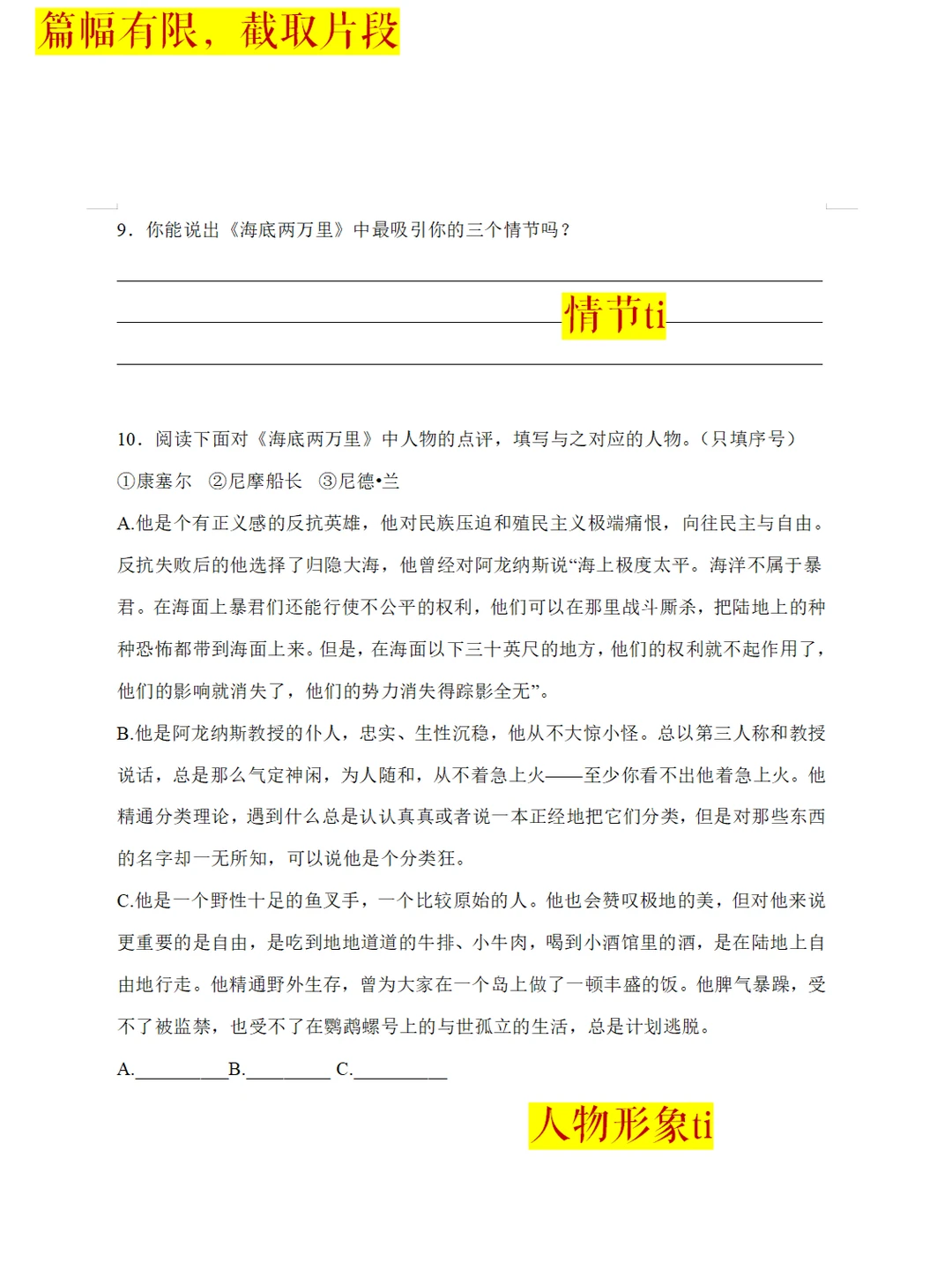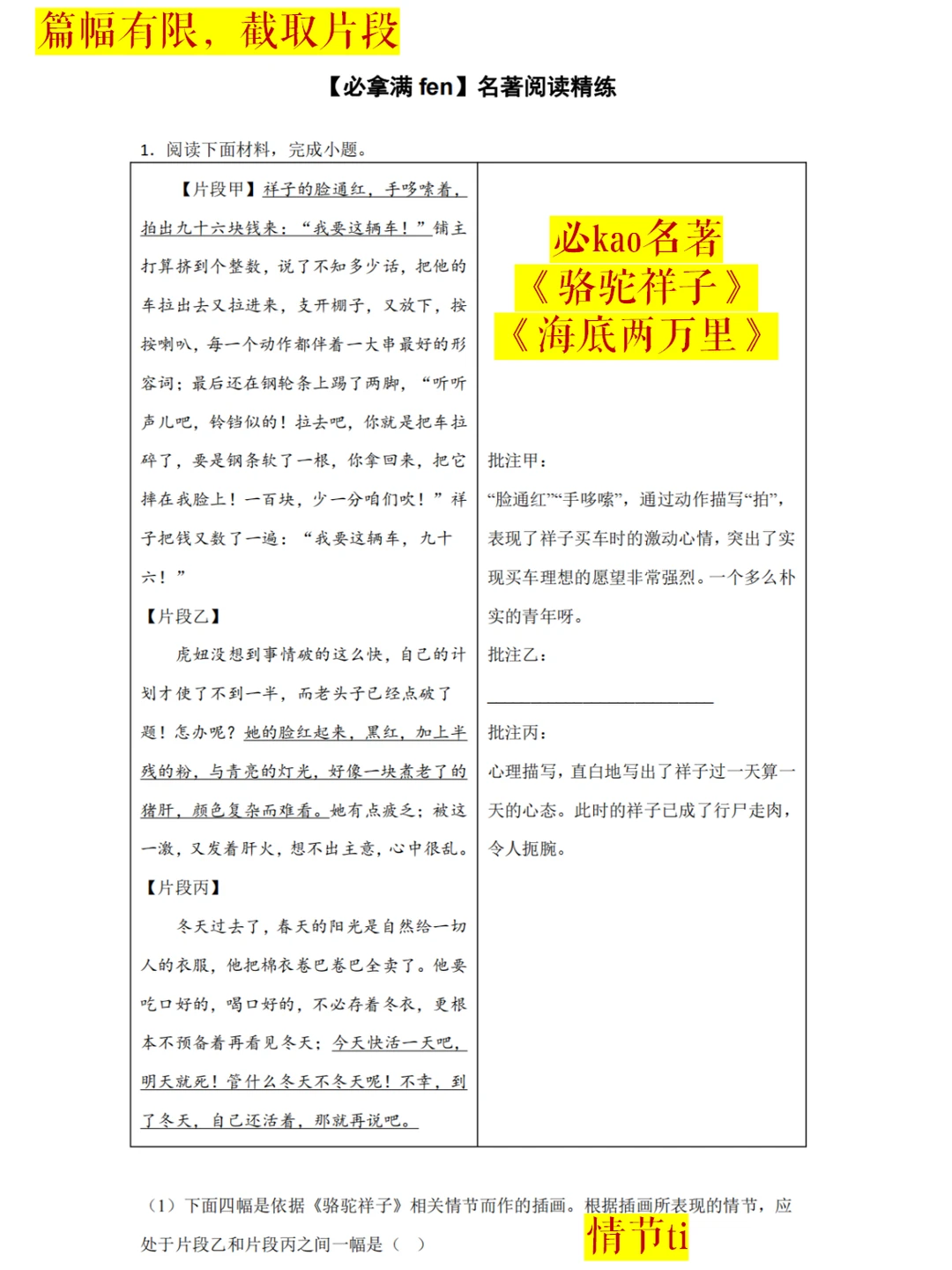 3、名著板块:两本名著zhenti训练