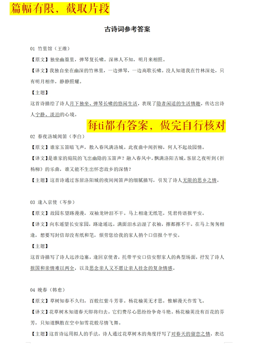 1、古诗板块:13首古诗默写+主旨
