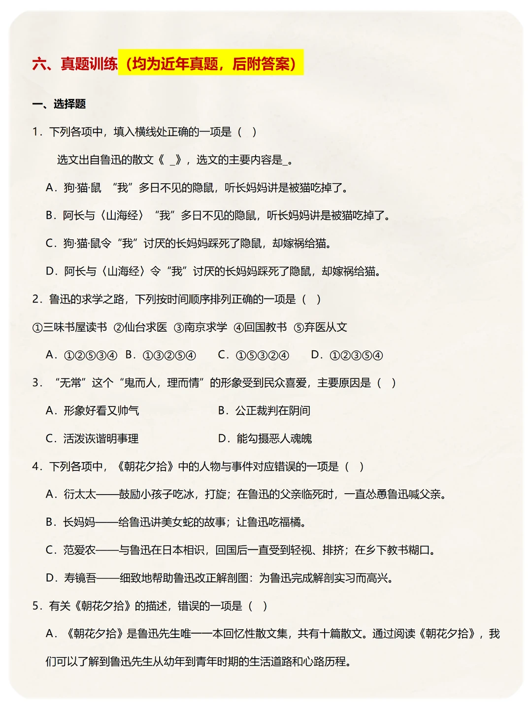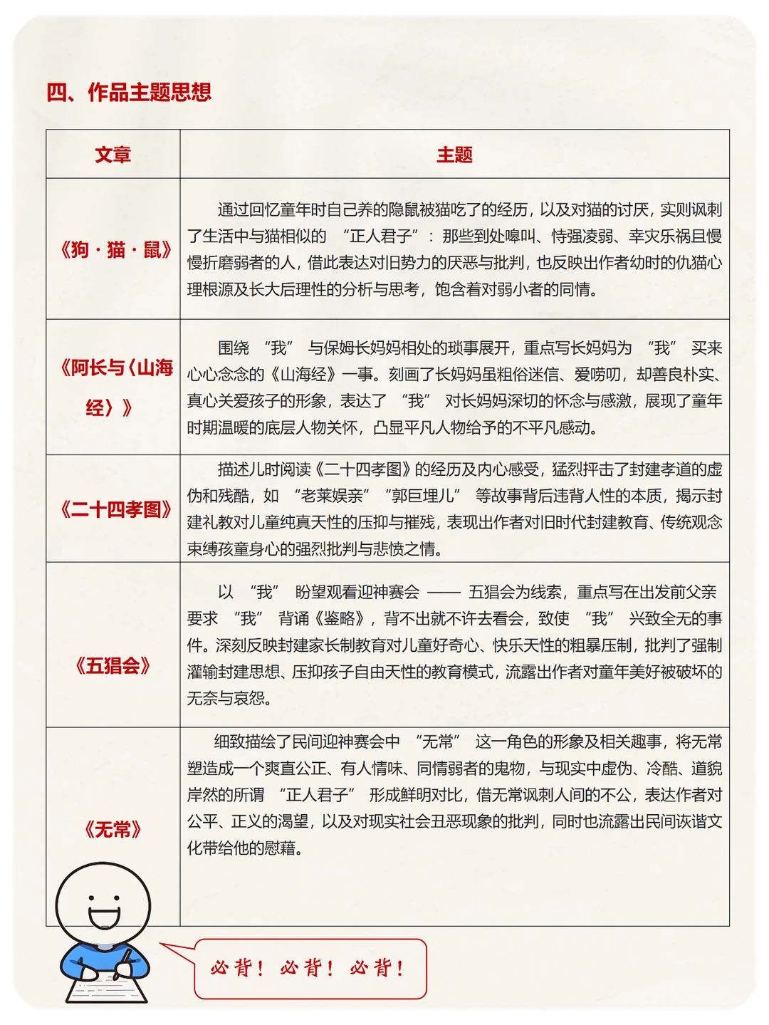 ➡️《朝花夕拾》高频考点