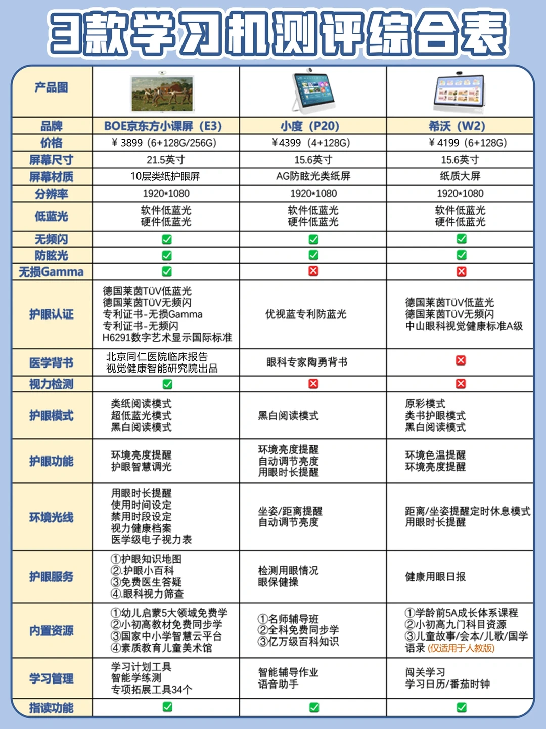 🔎综合护眼技术、学习资源、性价比方面来说,我个人更偏向BOE京东方小课屏E3。以后孩子接触电子产品会越来越频繁,从小保护好视力👀是很重要的![派对R]好啦,今天的分享就到这里了,如果有在考虑给孩子入手学习机的家长,可以参考哦~