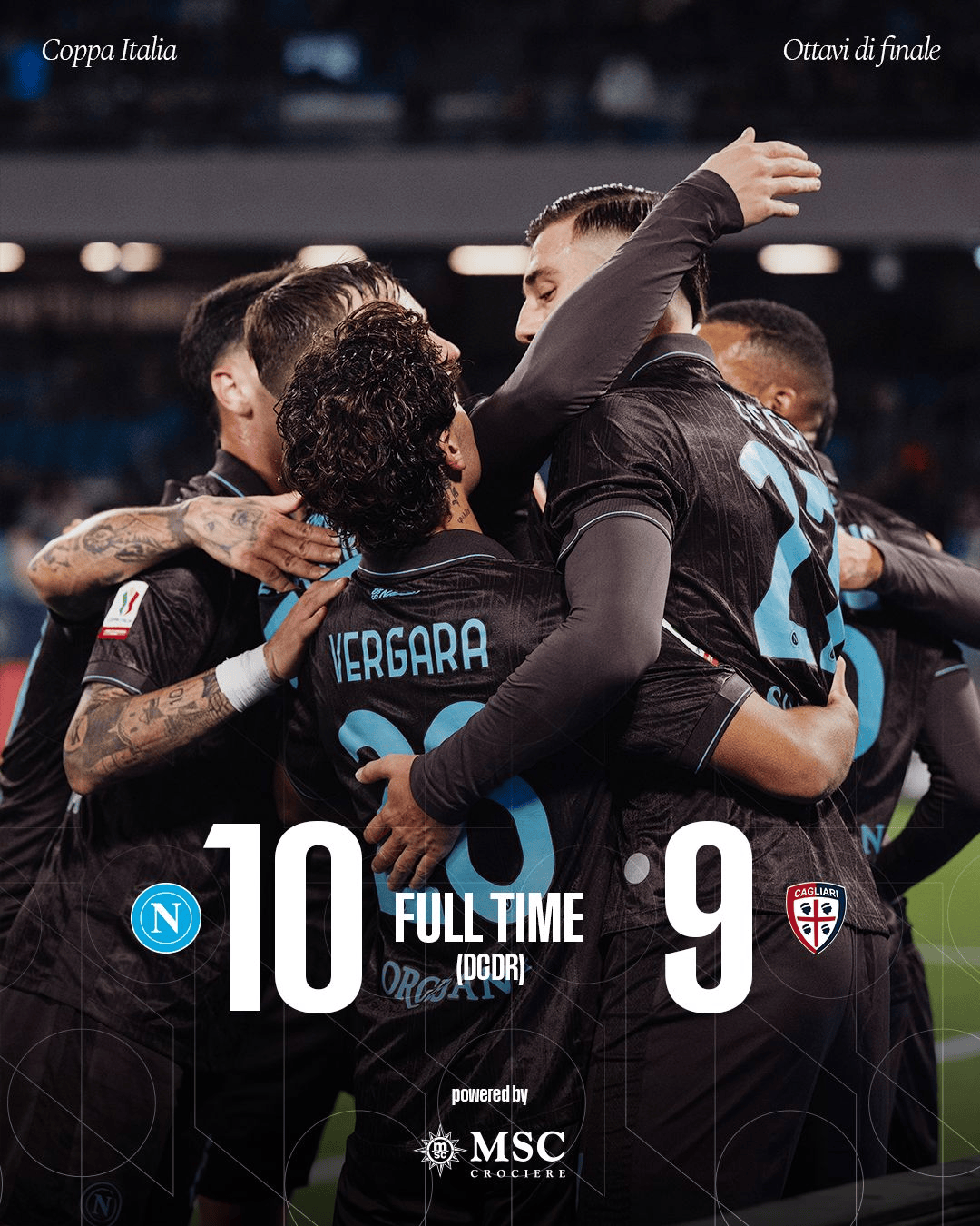 虎扑12月04日讯在刚刚结束的一场意大利杯1/8决赛的比赛中,那不勒斯坐镇主场,在点球大战中9-8击败了卡利亚里,晋级本赛季的意大利杯8强。