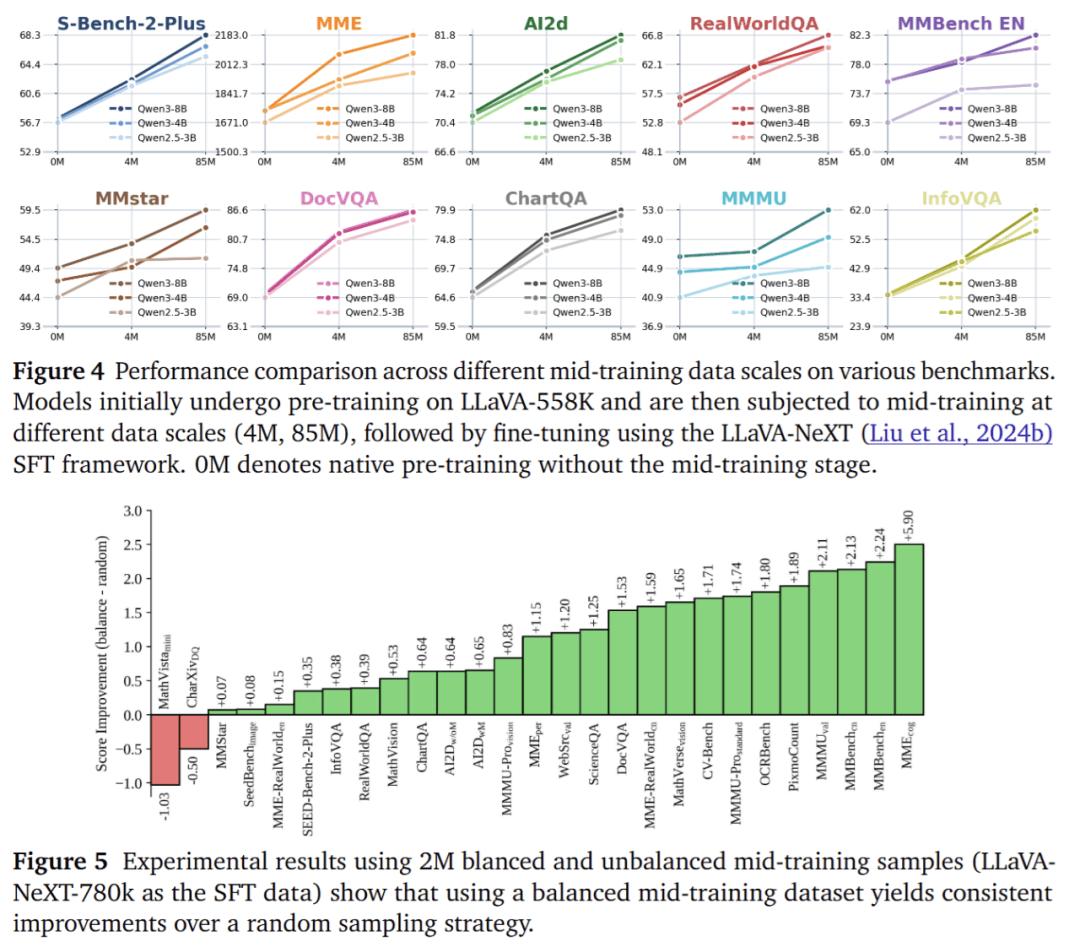 Stage-1.5:高质量知识中期预训练在概念均衡的 85M 预训练数据上进行全参数训练,注入广域视觉语义与世界知识,强调数据质量与覆盖而非盲目扩张 token 规模。