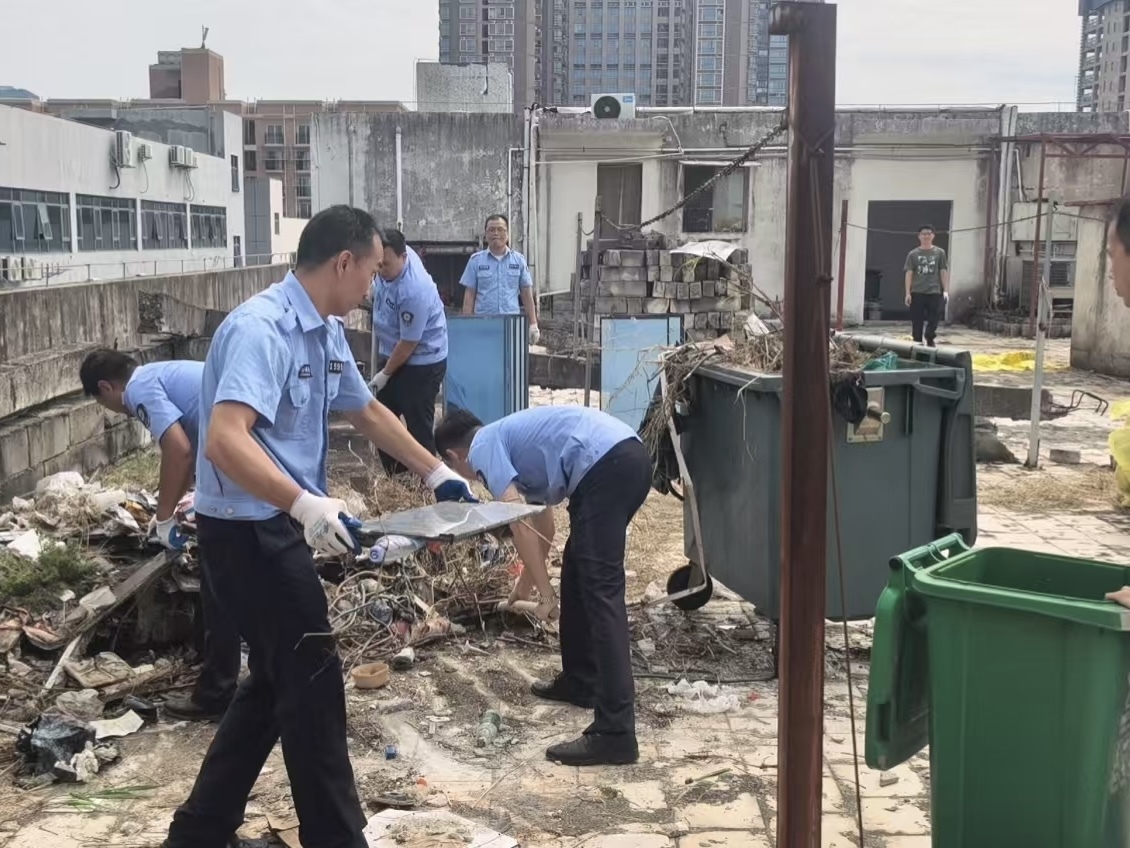 10月26日,西乡街道综合行政执法队联合网格、社区开展“两热”防疫执法检查。检查过程中,辖区一酒店楼顶天面的景象让执法人员感到震惊:杂物随意堆放且已锈蚀、角落积水苔藓滋生、垃圾堆杂草丛生……现场脏乱不堪,存在明显的蚊虫孳生隐患。执法人员当即拍照取证,并依据《广东省病媒生物预防控制管理规定》有关规定,依法对酒店负责人进行约谈教育,开具整改通知书,责令其限期整改并作出警告处罚。