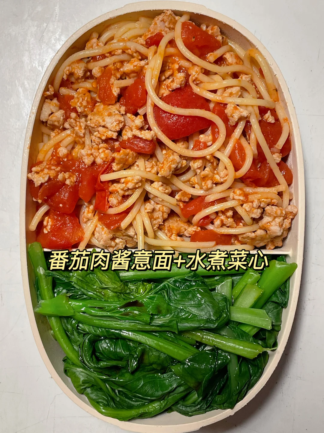 📍番茄肉酱意面+水煮菜心