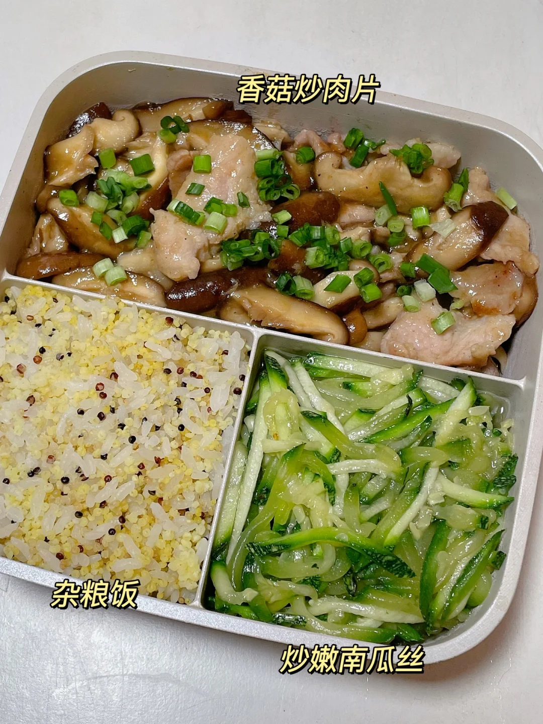 📍杂粮饭+炒嫩南瓜丝+香菇炒肉片