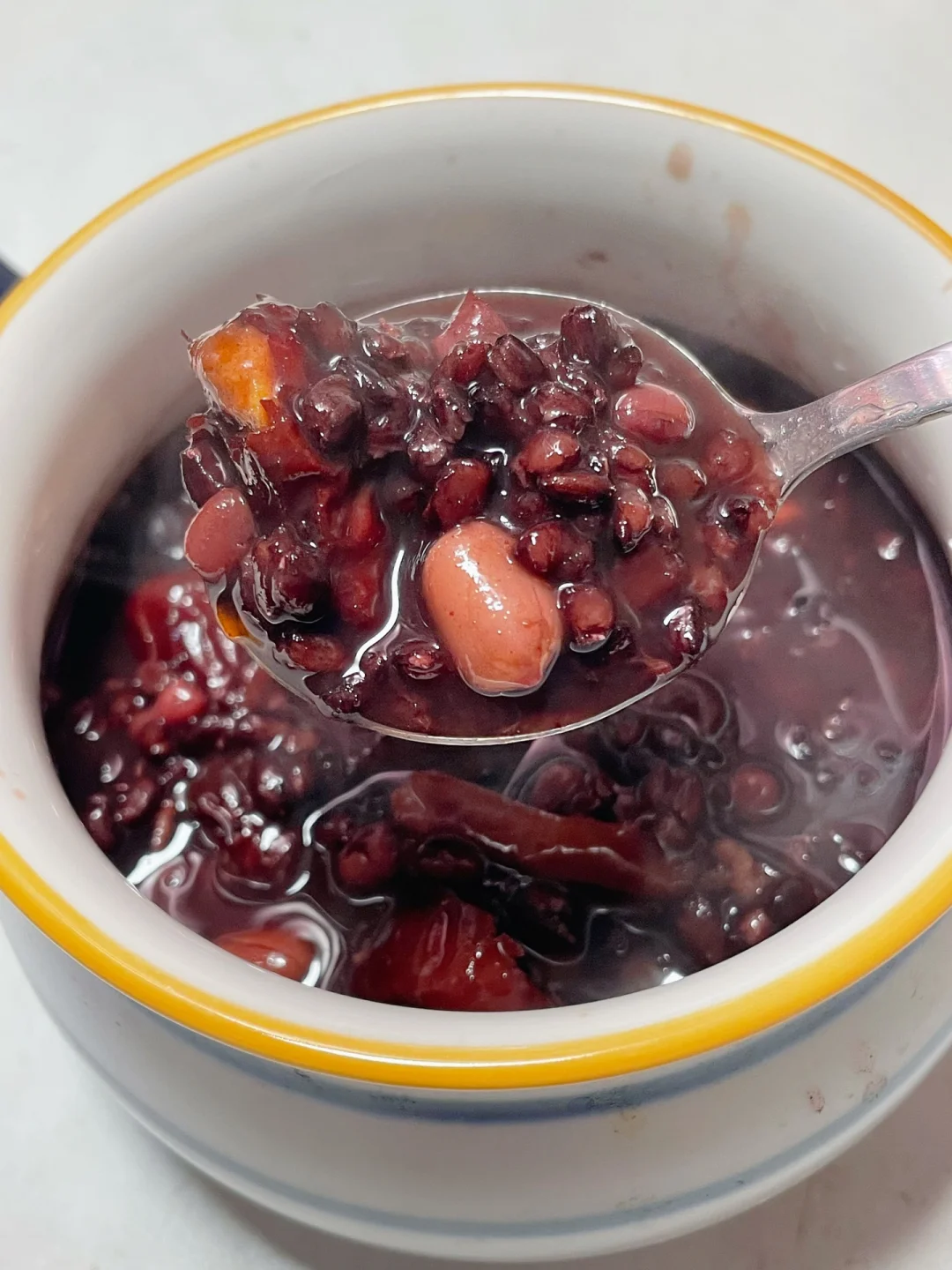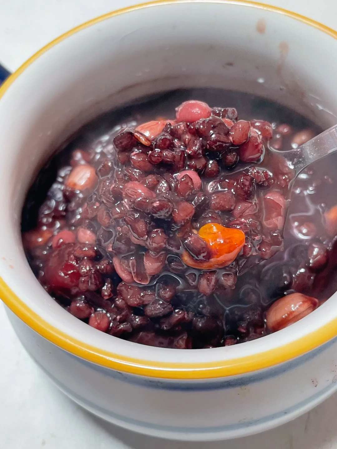如果电饭煲有预约模式,可以直接把红豆黑米预约熬粥,第二天早起粥熬好粘稠了,再加入红枣枸杞花生红糖焖煮20分钟,期间洗漱穿戴好刚好能吃👍🏻