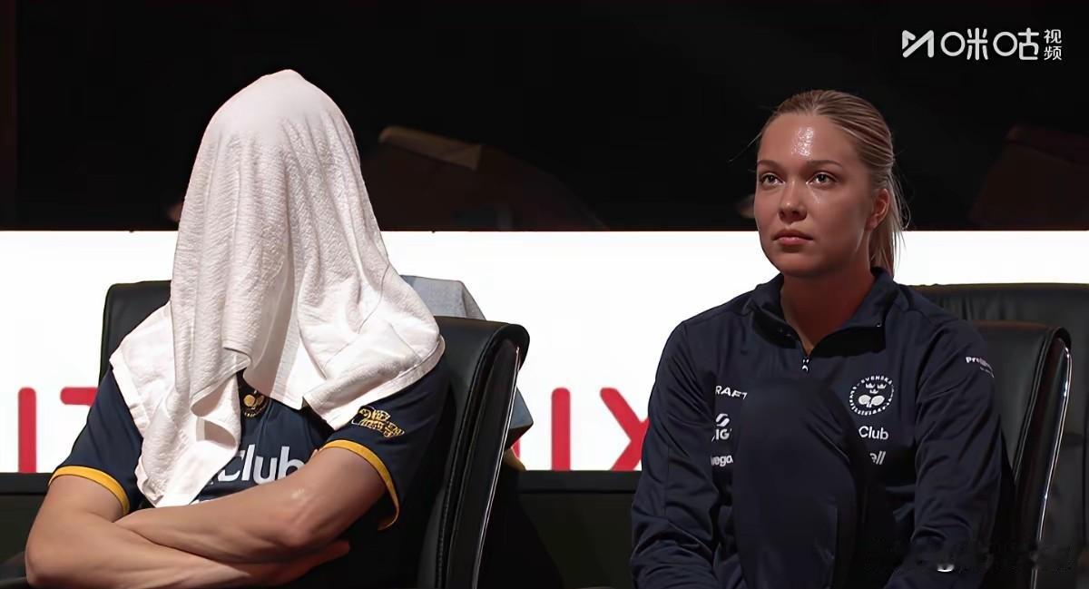 成都混团淘汰赛,莫雷加德缺席的瑞典队5:8输给了德国队。 瑞典男单卡尔伯格0:3输给了邱党后, 一个人坐在休息区, 用毛巾盖在自己头上, 妹妹只能拍拍他, 安慰哥哥! 当年瑞典乒协想收回莫雷加德球衣代言, 小莫和乒协闹翻, 卡尔伯格站队乒协, 小莫把他们拉黑了。 现在虽然和好了, 但是破镜重圆, 小莫还是不太配合乒协。 此时的卡尔伯格, 是不是后悔当初的决定!