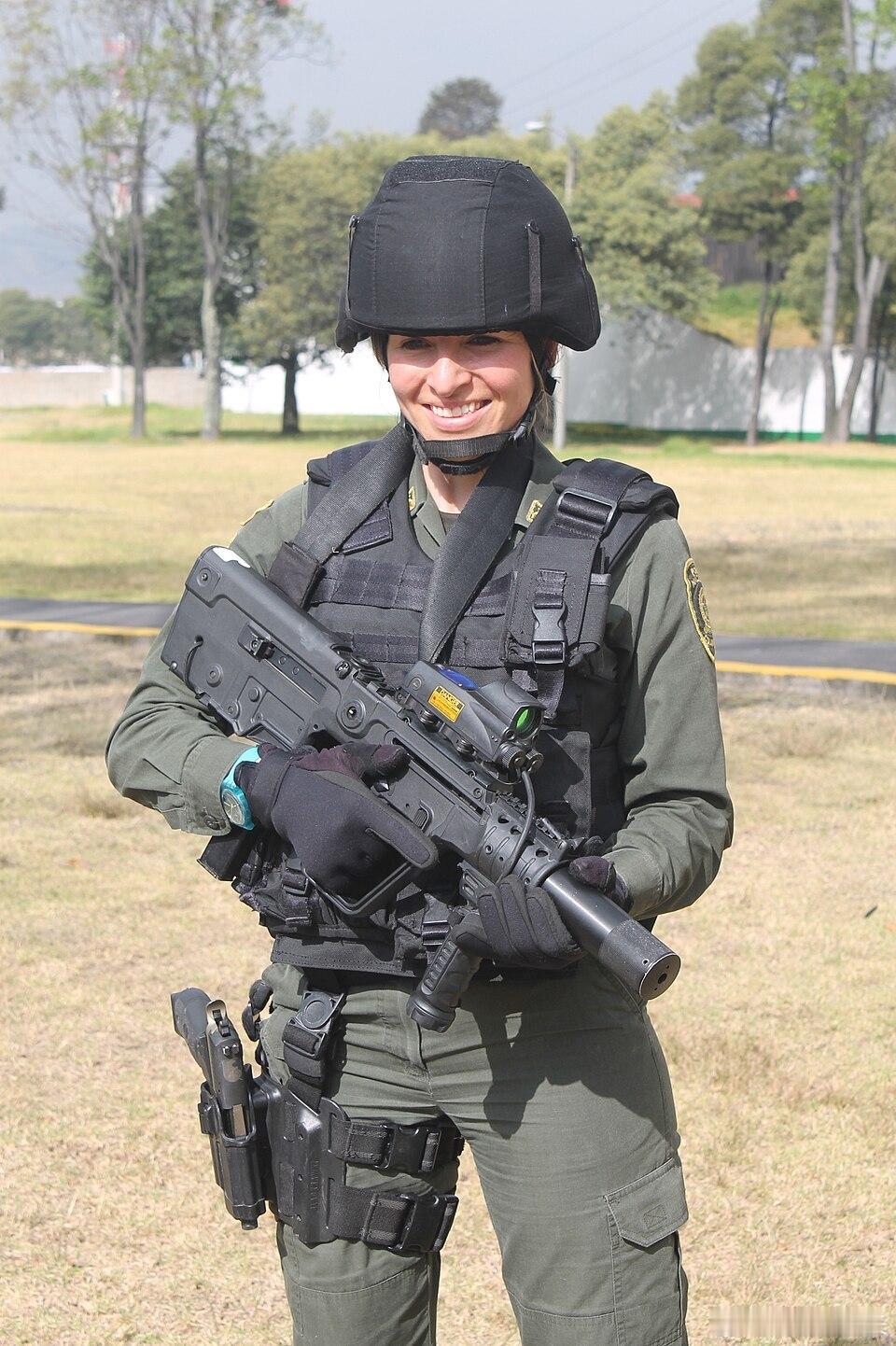 哥伦比亚女警手里是IWI X95 5.56毫米短管突击步枪——以军“塔沃尔”系列的牛犊式布局,把长枪管塞进紧凑机身,适合近战与车内射击。该国警察特种部队自2010年代起批量采购X95,与TAR-21一起替换老旧的IMI Galil,成为城市反恐与缉毒任务的标配之一。海外新鲜事热点观点