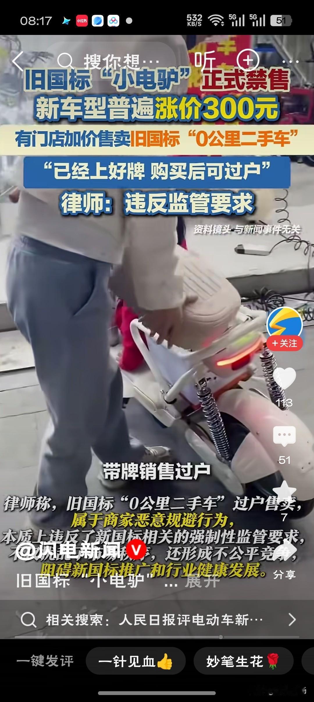 旧国标“小电驴”正式禁售“新国标”为安全加锁,但百姓的“小电驴”终究要驮起生活。